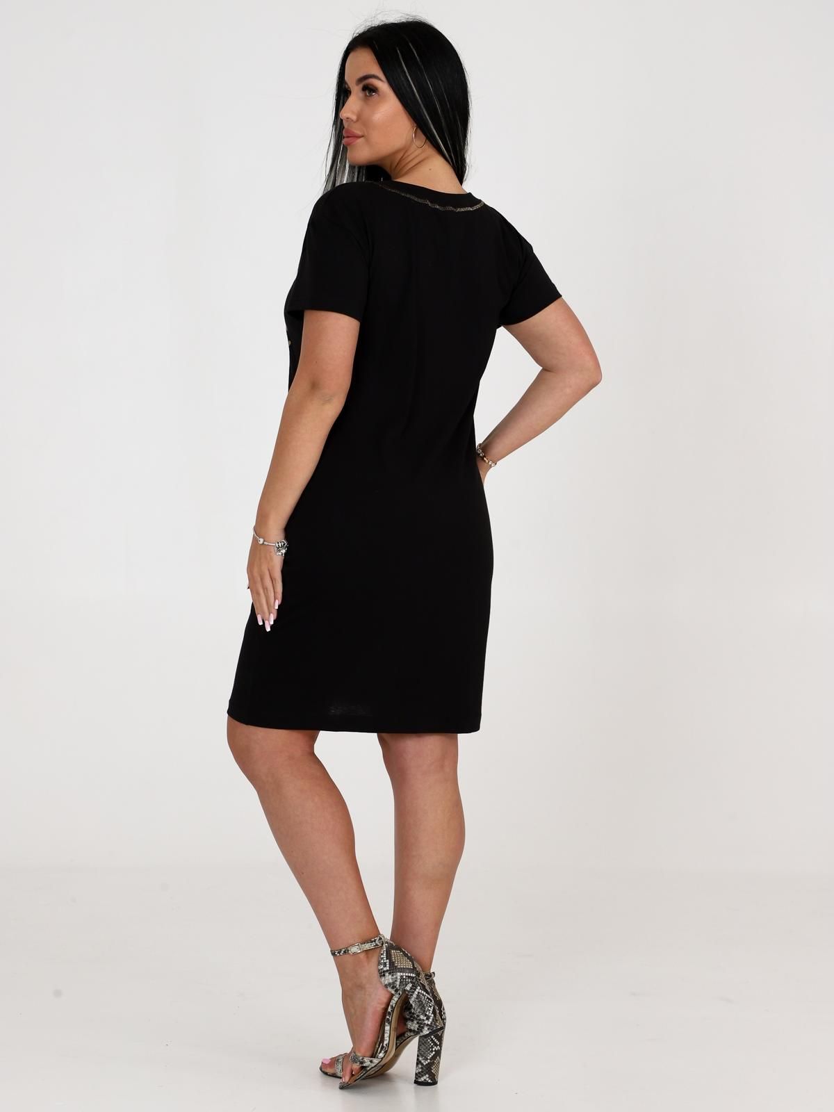 При пошиве использовано трикотажное полотно кулирка. Платье из гладкокрашеной кулирки с печатью "Подсолнух". Рукав втачной. Горловина обработаны обтачкой в цвет изделия с использованием пятиниточного шва с ниткой цвета "золото". Низ рукава и низ изделия обработаны швом в подгибку. Имеются 2 кармана в боковом шве. Вход в них обработан окантовкой в цвет изделия.