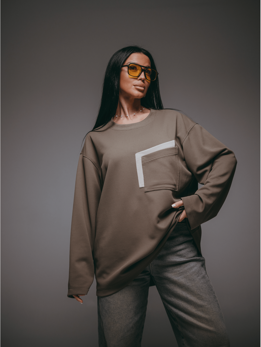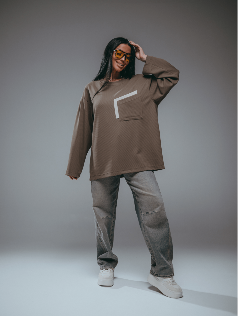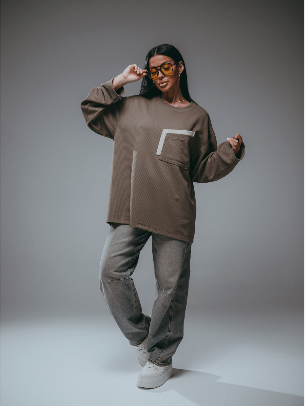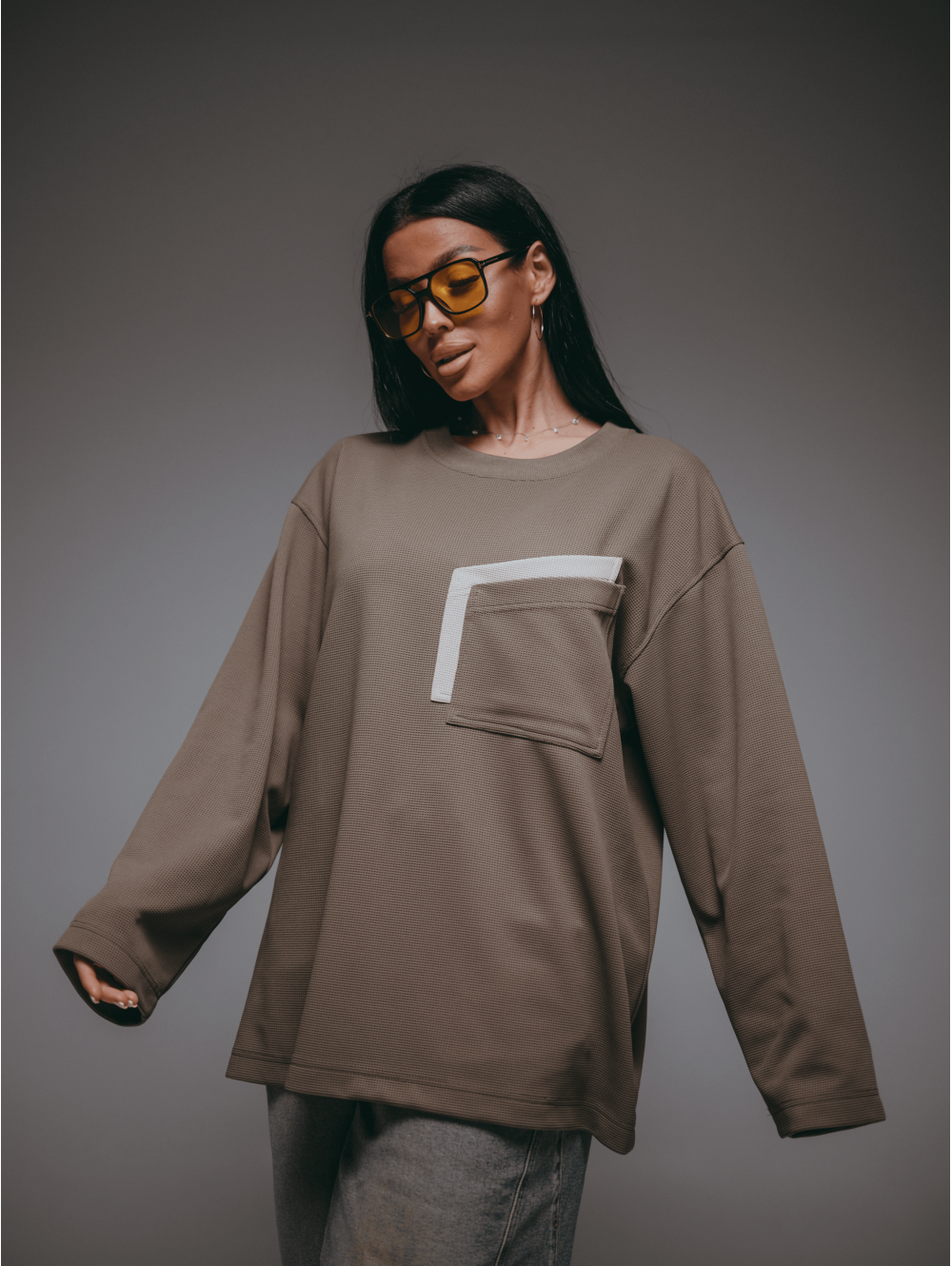 Свитшот прямой - оверсайз со спущенным плечом и длинным втачным рукавом.