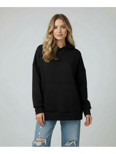 Худи с капюшоном свободного покроя с поясом по низу, со спущенным плечом и длинным втачным рукавом на манжете.