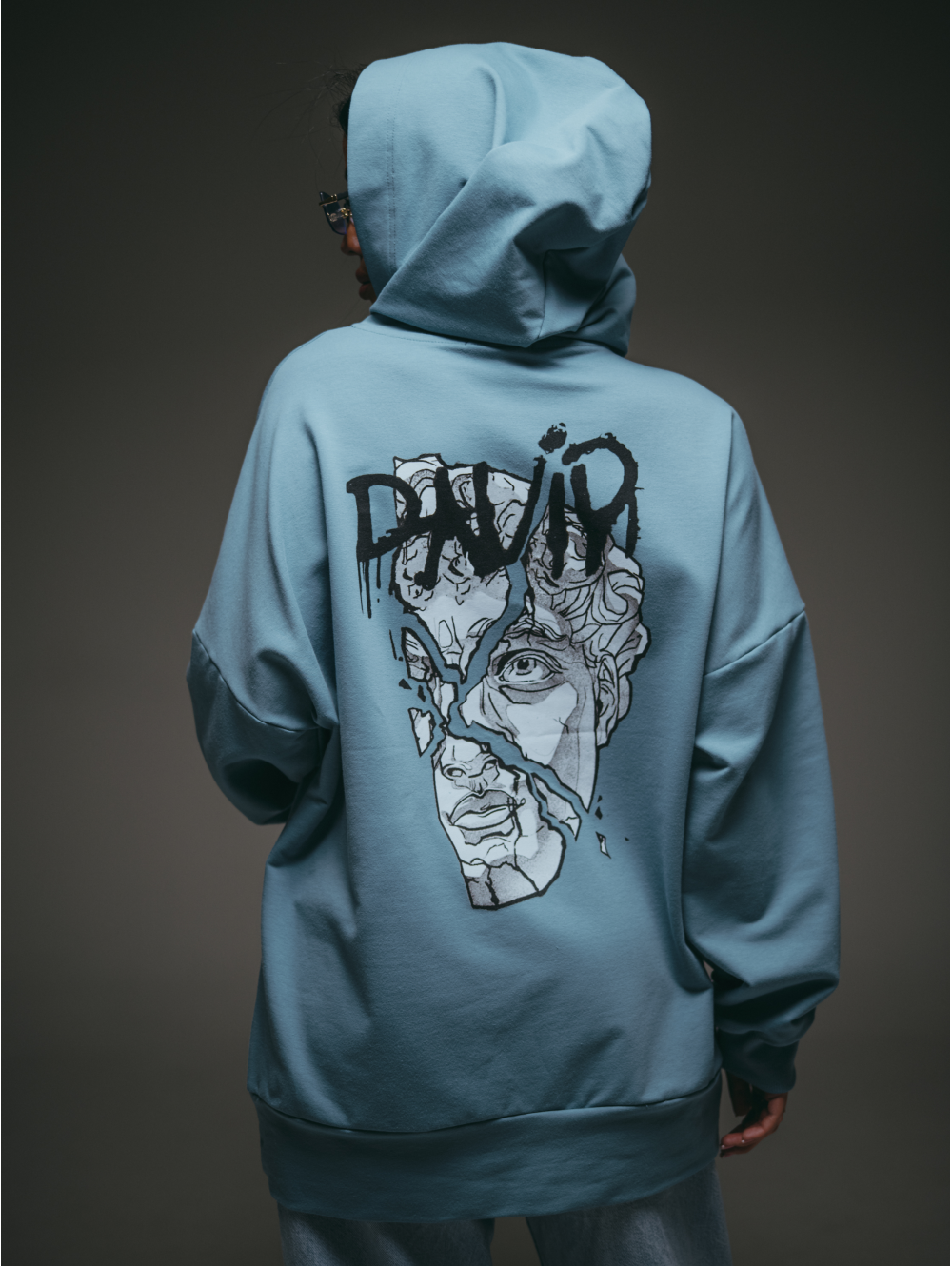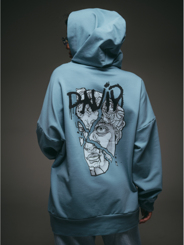 Худи с капюшоном свободного покроя с поясом по низу, со спущенным плечом и длинным втачным рукавом на манжете.