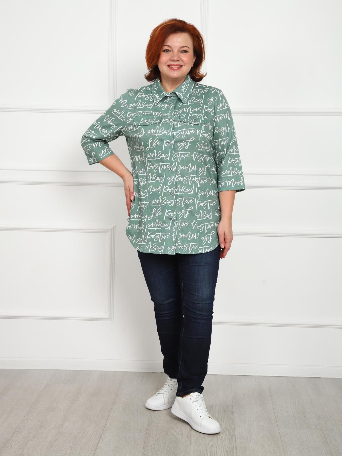 Универсальная хлопковая рубашка с рукавом 3/4. Свободный крой и рельефы на груди обеспечивают хорошую посадку. Закругленный низ изделия закрывает бедра.