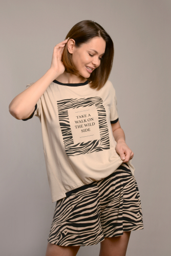 Представляем вашему вниманию стильный и удобный летний комплект от DANi.TEX BRAND - костюм из футболки и шорт. Этот яркий пижамный домашний костюм представлен в красивом молодежном стиле, что делает его отличным выбором для девушек. Футболка и шорты выполнены из 95%хлопка и 5% лайкры. Ткань пропускает воздух, впитывает влагу и приятна к телу, идеально подойдет как для домашнего отдыха, так и для сна. Костюм имеет свободный крой, который не обтягивает и позволяет свободно двигаться. Он подходит на любой рост и отлично сидит на фигуре. Футболка с круглым вырезом создает комфортное ощущение на шее, а шорты на резинке добавляют удобства и функциональности. Этот костюм легко ухаживать - достаточно бережной стирки при температуре до 30 градусов. Он отличается стильным дизайном с оригинальным рисунком леопардовый принт с привлекательным ярким цветом. Будьте в тренде с новой коллекцией от DANi.TEX BRAND! Этот товар является продукцией собственного производства бренда DANi.TEX BRAND, что гарантирует высокое качество и соответствие всем стандартам. Приобретая этот костюм, вы получите не только модный и красивый наряд, но и уверенность в его надежности и долговечности. Не упустите возможность приобрести эту новинку и добавить стильный элемент в свой гардероб!
