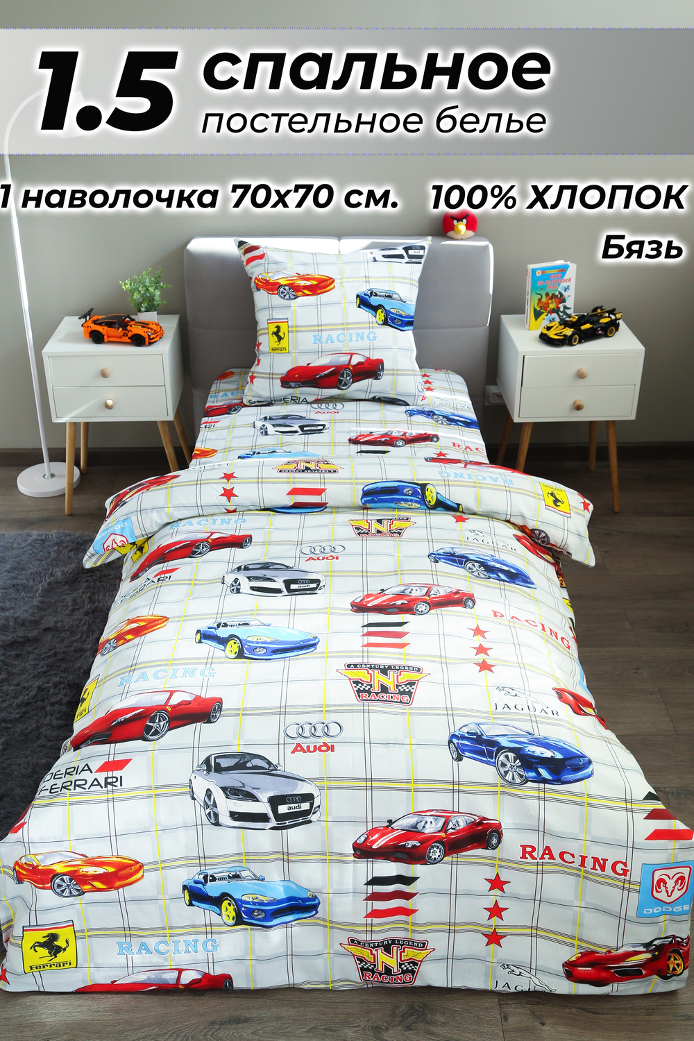 Постельное белье Тест-драйв с рисунком автомобилей на сером клетчатом фоне из ткани бязь на 1.5 спальную кровать. Натуральная ткань плотности 125 гр/м2, состав 100% хлопок абсолютно экологичен, не вызывает аллергии, хорошо пропускает воздух, позволяя телу дышать. При правильном уходе постельное белье прослужит вам долгое время. Предварительная стирка обязательна. Перед стиркой вывернуть изделие на изнаночную сторону. Стирать отдельно от синтетических изделий. Машинная стирка при максимальной температуре 40С, мягкий режим. Стирать моющими средствами для цветных тканей. Не отбеливать. Гладить с изнаночной стороны при максимальной температуре утюга. Усадка после стирки до 3%, от заявленных размеров изделия. Ткань не подвержена образованию катышков.