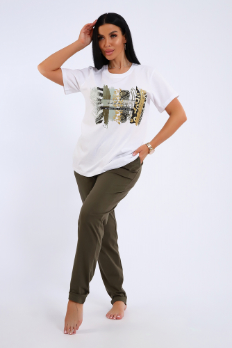 Яркий, модный, стильный женский костюм из мягкого трикотажного полотна высокого качества. Состоит из легкой кофты белого цвета с ярким принтов на полочке и брюк. Универсальный и практичный повседневный костюм в спортивном стиле будет удобным и комфортным во многих ситуациях - прекрасно подойдет для встреч с друзьями и прогулок, активного отдыха и любительского спорта, для дома, улицы и дачи, для похода в магазин и поездки на пикник. Костюм представлен в трех стильных расцветках, чтобы модницам было из чего выбрать!