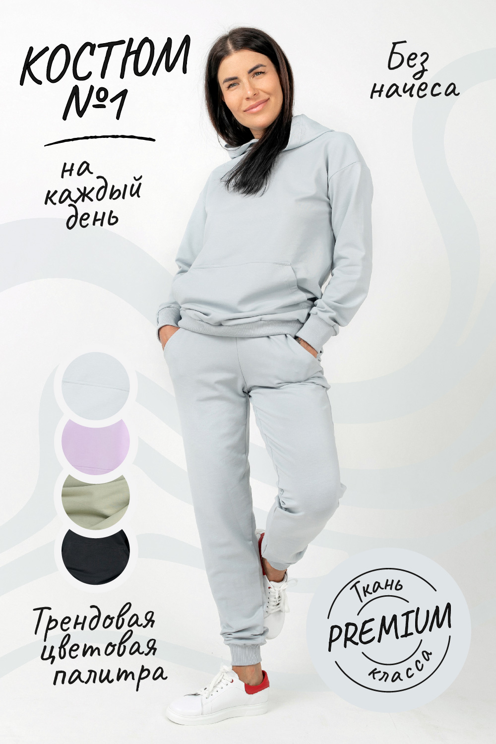 Женский спортивный костюм с капюшоном - практичный образ как на каждый день, так и для поездок и активного отдыха. Верх - худи оверсайз, низ - брюки джоггеры с высокой посадкой. Костюм спортивный женский выполнен из футера высокого качества 2-х нитки без начеса (производство Турция). Костюм для высоких, костюм для беременных, для йоги, костюм для прогулок. Футер - натуральный хлопок с небольшим количеством полиэстера для поддержания формы и эластичности изделия. Дышащий, мягкий и комфортный костюм спортшик благодаря своему натуральному составу ткани, прекрасно подходит как для теплой, так и для прохладной погоды. Выбирая этот базовый спортивный костюм, Вы получаете универсальный стильный худи оверсайз с карманом кенгуру, который можно сочетать с джинсами и юбками, а так же удобные, стильные брюки джоггеры. Карман кенгуру на худи обработан закрепочными строчками.