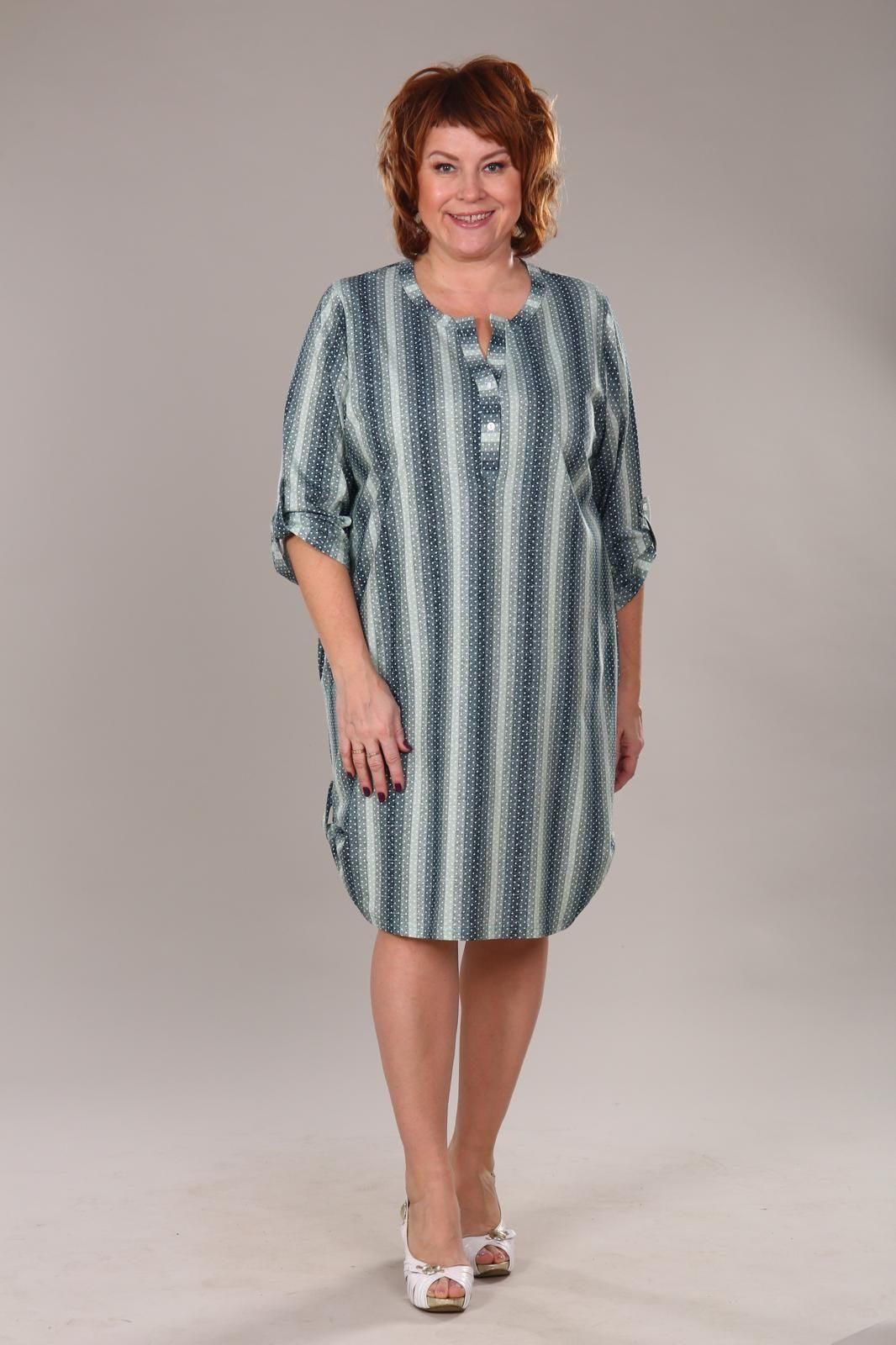 Легкое и нежное женское платье- туника,  выполнено из хлопкового трикотажного полотна. Туника средней длины, прямого покроя с внутренними карманами в боковых швах.  Рукав 3/4. Фигурный низ изделия и рукава декорированы патами на пуговицах. Туника идеально подойдет для женщины с любым типом фигуры. Отличный вариант на каждый день!