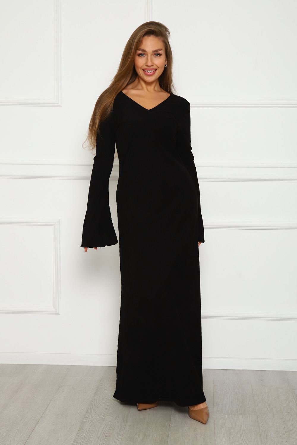 Женское обтягивающее трикотажное платье лапша это роскошная универсальная модель для стильного и трендового образа. С длиной в пол оно идеально подходит как для повседневного использования в демисезонное время, так и для вечерних мероприятий летом или поход в ресторан на свидание зимним вечером. Стильный приталенный крой обрамляет фигуру, а утягивающие завязки придают стройный женственный силуэт, сочетая в себе нежность и элегантность. Этот модный наряд со шнуровкой отлично сочетается с различными аксессуарами. В основе платья - трикотажный однотонный материал, обеспечивающий качество и комфорт при носке. Приятное к телу теплое полотно позволяет коже дышать, долго сохраняет первоначальный вид и стиль платья. Длинные расклешенные широкие рукава добавляют изысканности обтягивающему платью в рубчик и гармонично завершают композицию. Возможность комбинировать с любой обувью, будь то летние ботинки, зимние туфли или кеды, дает шанс создавать луки для любого сезона, будь то весна или осень. Этот фасон исключительно универсален: он подойдет для офиса, прогулок или праздничных торжественных событий таких как, день рождения, вечеринка, фотосессия, корпоратив, на новогоднее мероприятие или просто выход в клуб. Красивый внешний вид делает его идеальным выбором в праздник для девушек и женщин всех возрастов, подросткам для школьных молодежных торжеств, девушкам на весеннюю прогулку и для деловой встречи, подружкам невест на свадебное мероприятие. Это шикарное коктейльное черное платье можно носить каждый день или сохранить для особых случаев его привлекательность от этого не изменится.