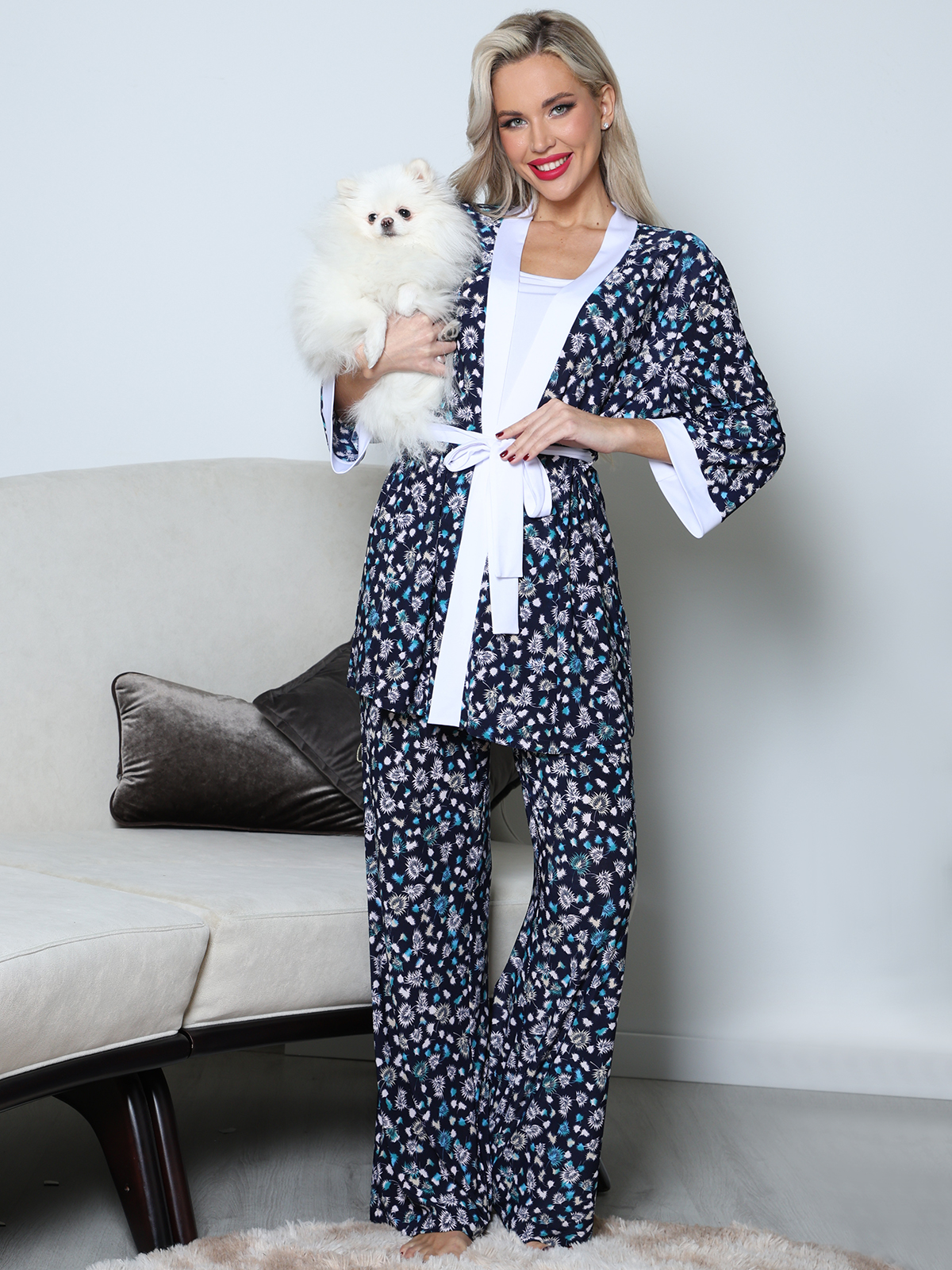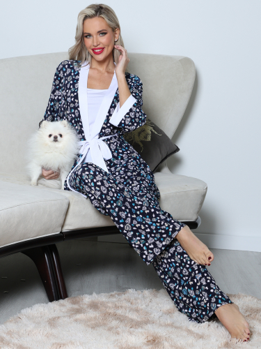 Подарите себе комфорт и уют с этим стильным домашним костюмом, состоящим из топа, халата и брюк! Идеальный набор для отдыха, утренних ритуалов или вечернего расслабления. Комплект из трех элементов: Топ: мягкий и удобный, идеально подходит для комфорта в течение всего дня. Халат: легкий и уютный, с поясом для регулировки посадки. Брюки: свободного кроя, с эластичным поясом для максимального удобства. Лаконичный стиль, который подчеркивает вашу женственность и создает ощущение уюта. Этот комплект станет вашим любимым выбором для тех моментов, когда хочется расслабиться и насладиться комфортом. Подарите себе удовольствие от каждого дня с этим уютным домашним костюмом!