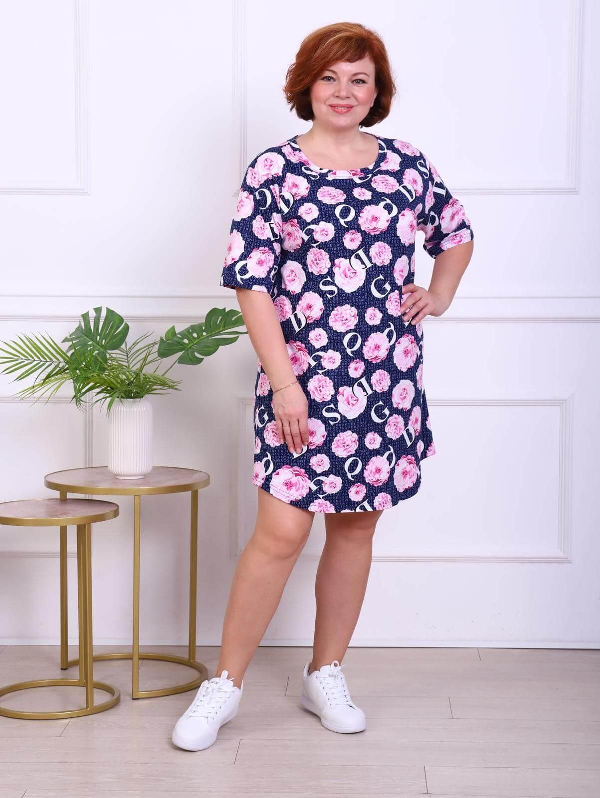 Женская туника выполнена из трикотажного полотна "кулирка". Туника свободного покроя,с рукавом. Низ туники разноуровневый, горловина круглая, обработанная бейкой.