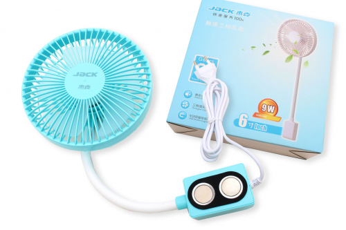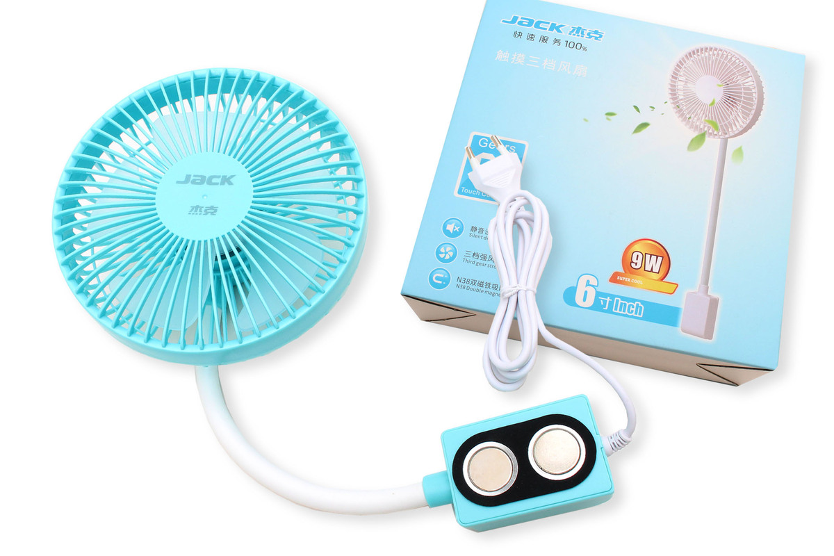 Портативный настольный вентилятор на гибкой ножке с удобным и надежным креплением на два магнита, оснащен защитной силиконовой накладкой. Три режима мощности (макс. 9 Вт). Подключается к стандартной сети питания. Обеспечивает естественный и приятный обдув за счет пяти лопастей, работает бесшумно. На корпусе расположена сенсорная кнопка управления.