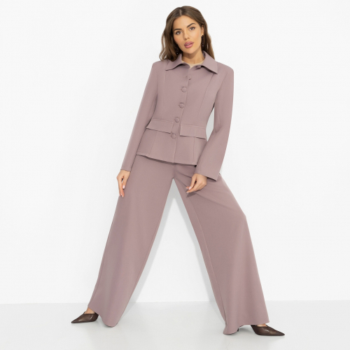 Стеклянные двери офиса закрываются за спиной, на столе уже ждут документы, в воздухе – напряжённая тишина перед важным решением. Ты спокойно проходишь к столу и одним уверенным движением ставишь стильную точку в переговорах. Этот оттенок розового звучит как аргумент, который невозможно игнорировать. Костюм рисует чёткий деловой силуэт: жакет выделяет талию и линию плеч, юбка вытягивает фигуру и добавляет строгости. Актуальный оттенок освежает образ и делает его выразительным в бизнес-среде. Элегантность, которая работает на результат.