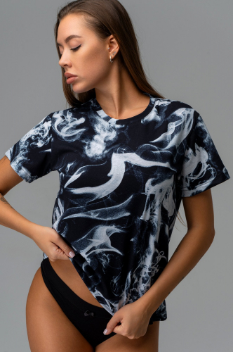 Женская футболка с принтом дым — оригинальный вариант в вашем гардеробе. Трикотажная футболка — надежный спутник в создании стильных и комфортных образов на каждый день.