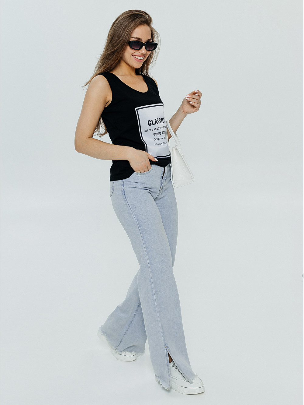 Майка на широких лямках является базовым элементом гардероба на каждый день.