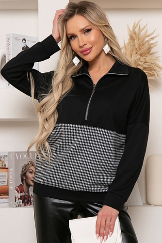 * Комбинированный джемпер свободного силуэта из трикотажного полотна джерси и жаккардового трикотажа гусиная лапка.