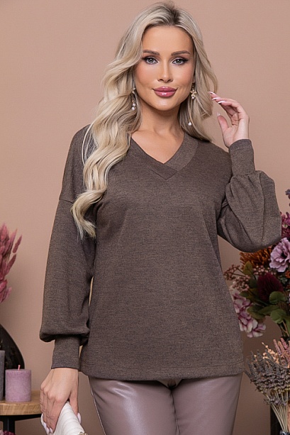 * Джемпер свободного силуэта с V-вырезом горловины из трикотажного полотна.