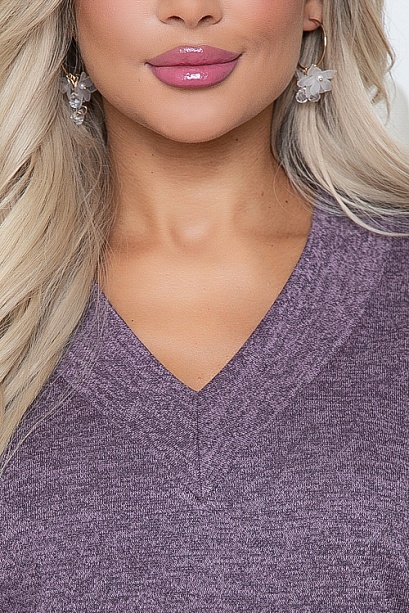 Джемпер из трикотажного полотна свободного силуэта с V-вырезом горловины.