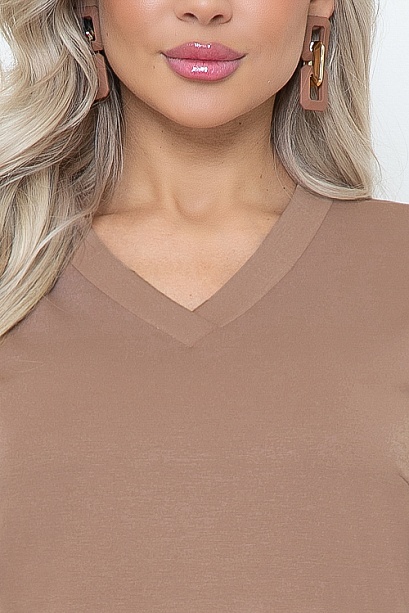 Джемпер из трикотажного полотна джерси с V-вырезом горловины.