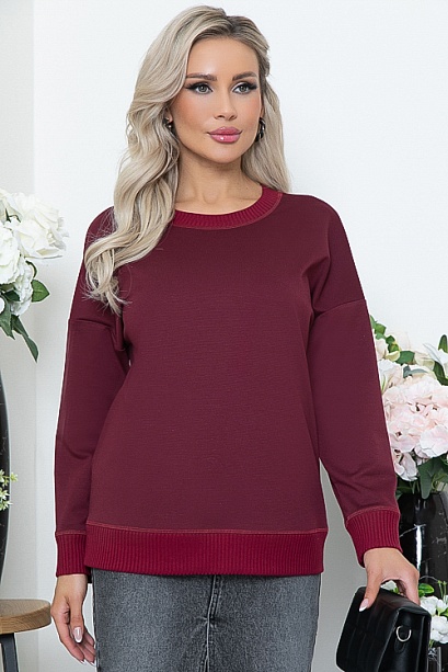 Джемпер из трикотажного полотна джерси свободного силуэта с отделкой трикотажной рибаной.