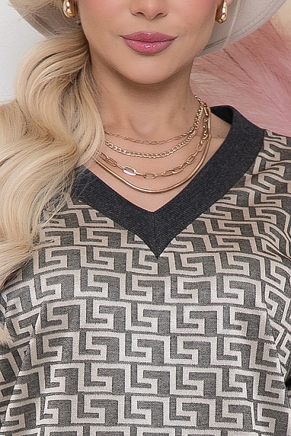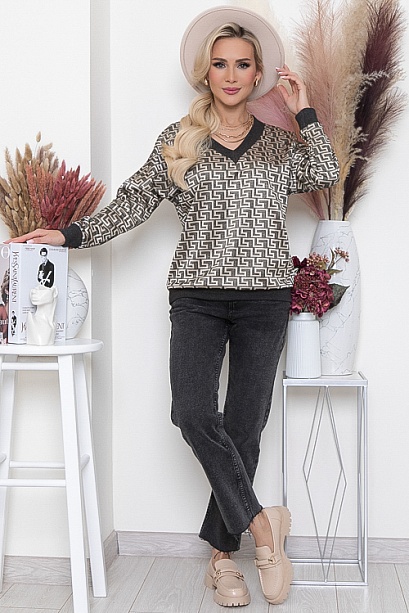 Джемпер свободного силуэта из жаккардового трикотажного полотна с отделкой трикотажной,хлопковой рибаной.