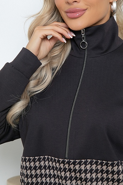 * Комбинированный джемпер свободного силуэта из трикотажного полотна джерси и жаккардового трикотажа гусиная лапка.