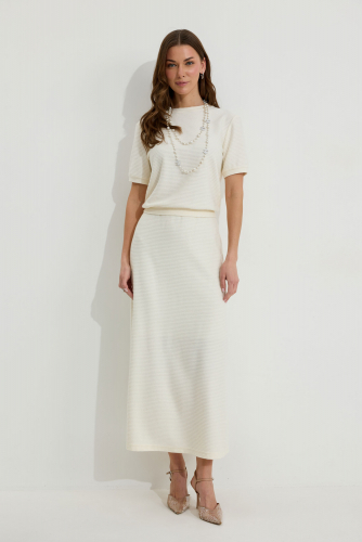 Джемпер 4312 (молоко) 1870 44-54 Джемпер полуприлегающего силуэта из трикотажного полотна. Горловина округлая, рукав втачной, по низу манжета. По низу джемпера притачной пояс. "Длина джемпера (44-48р – 52см)(50-54р - 55см)