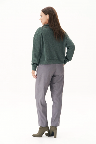 Джемпер из трикотажа. Это одна из базовых вещей осенне-зимнего сезона. Он тёплый, удобный и невероятно комфортный. К тому же, настолько универсален, что его можно стилизовать абсолютно разными способами. Свободный покрой с заниженной линией плеча, рукав рубашечного покроя на отрезной манжете, воротник классический, по центру полочки частичная застёжка-молния. По низу джемпера - отрезной пояс.