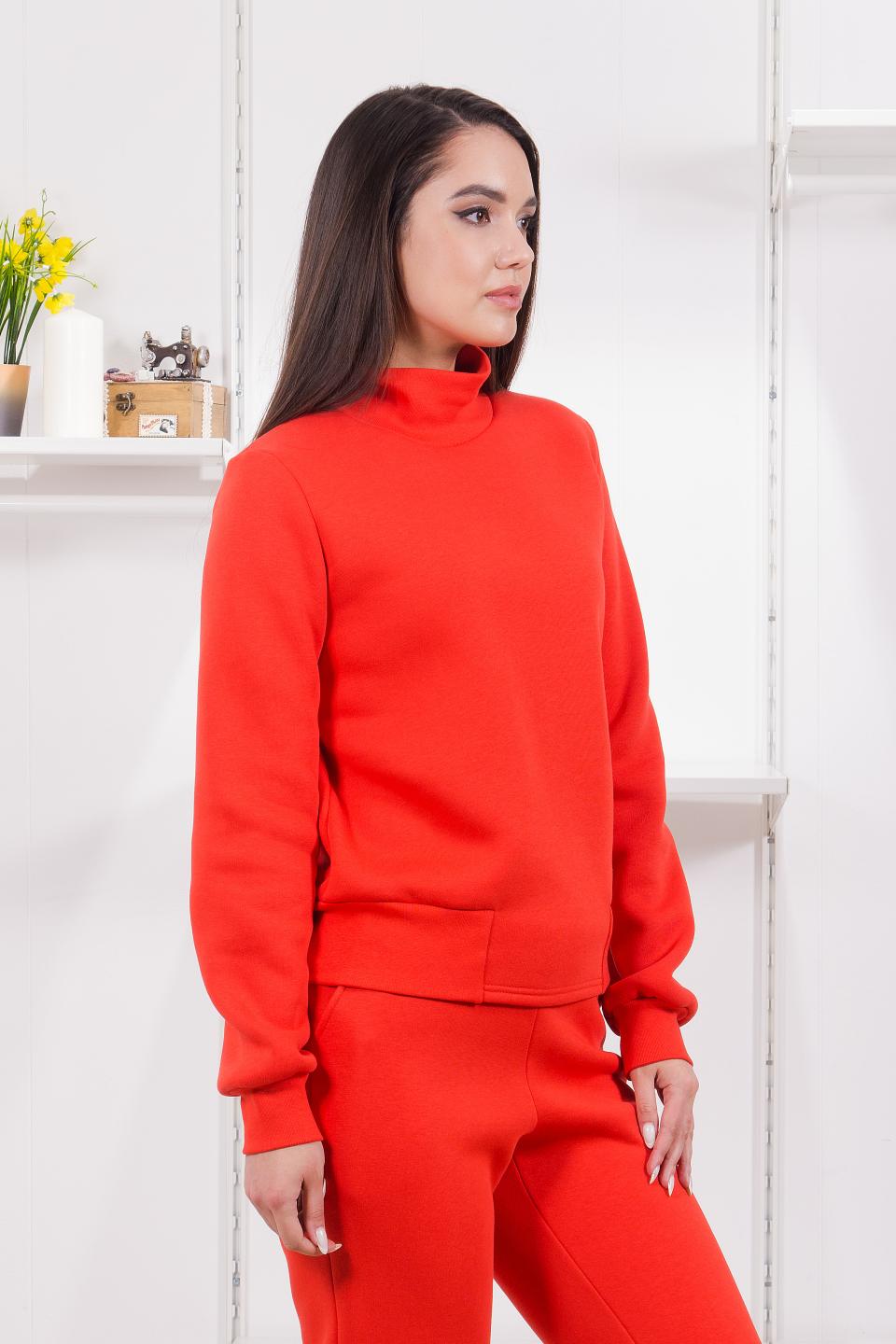 Описание: Оригинальный джемпер с высокой стойкой подарит тепло в прохладную погоду. Пояс с уступом спереди не создает лишний объем.