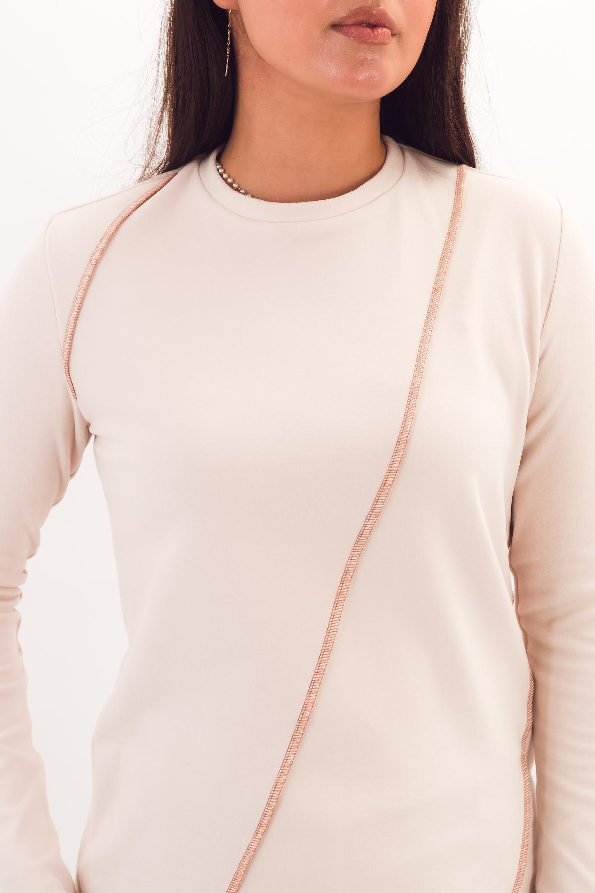 Описание: Удлиненный трикотажный джемпер прямого силуэта с оригинальными резами по преду и круглой горловиной подарит Вам комфортный и стильный образ!