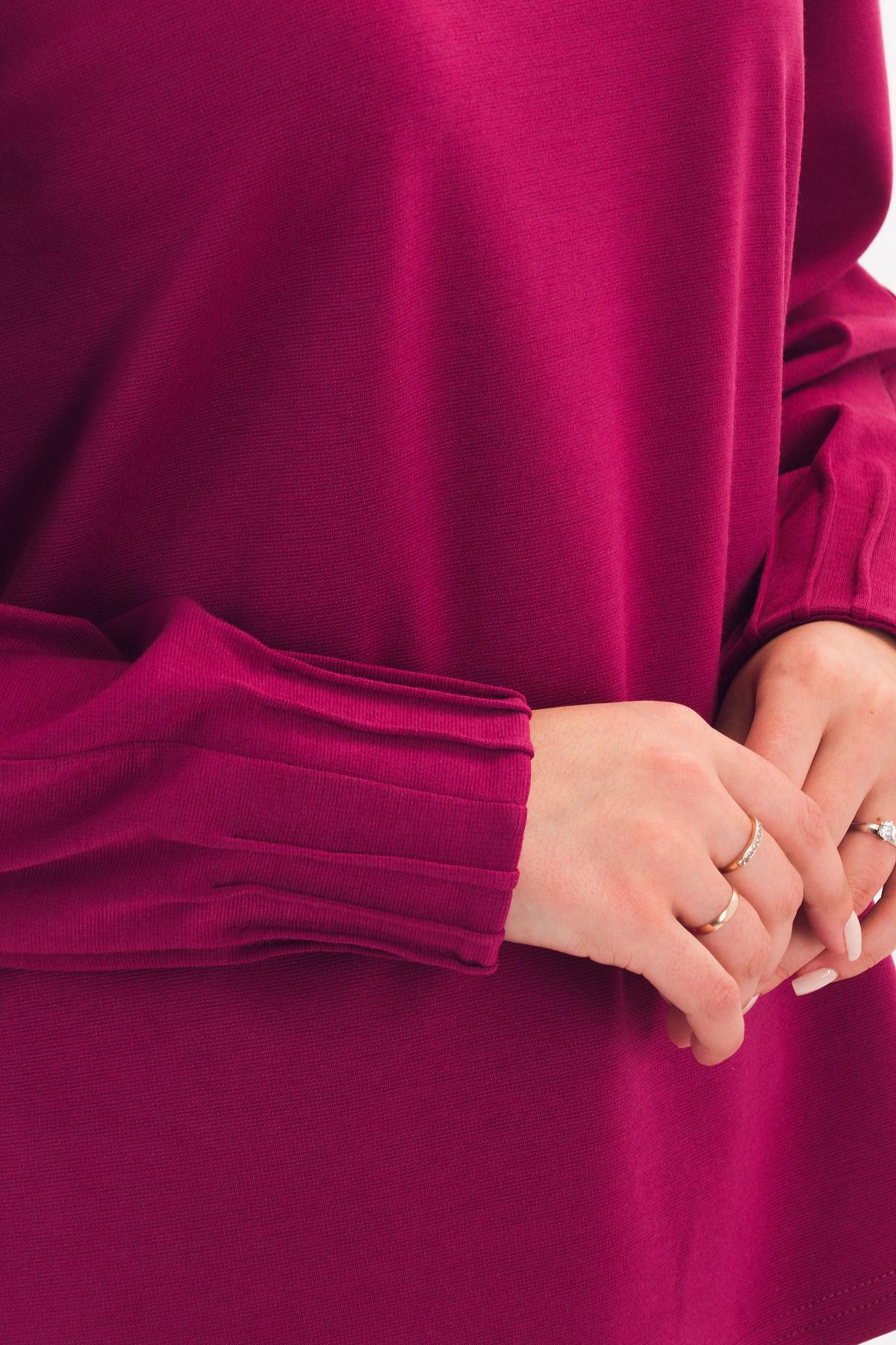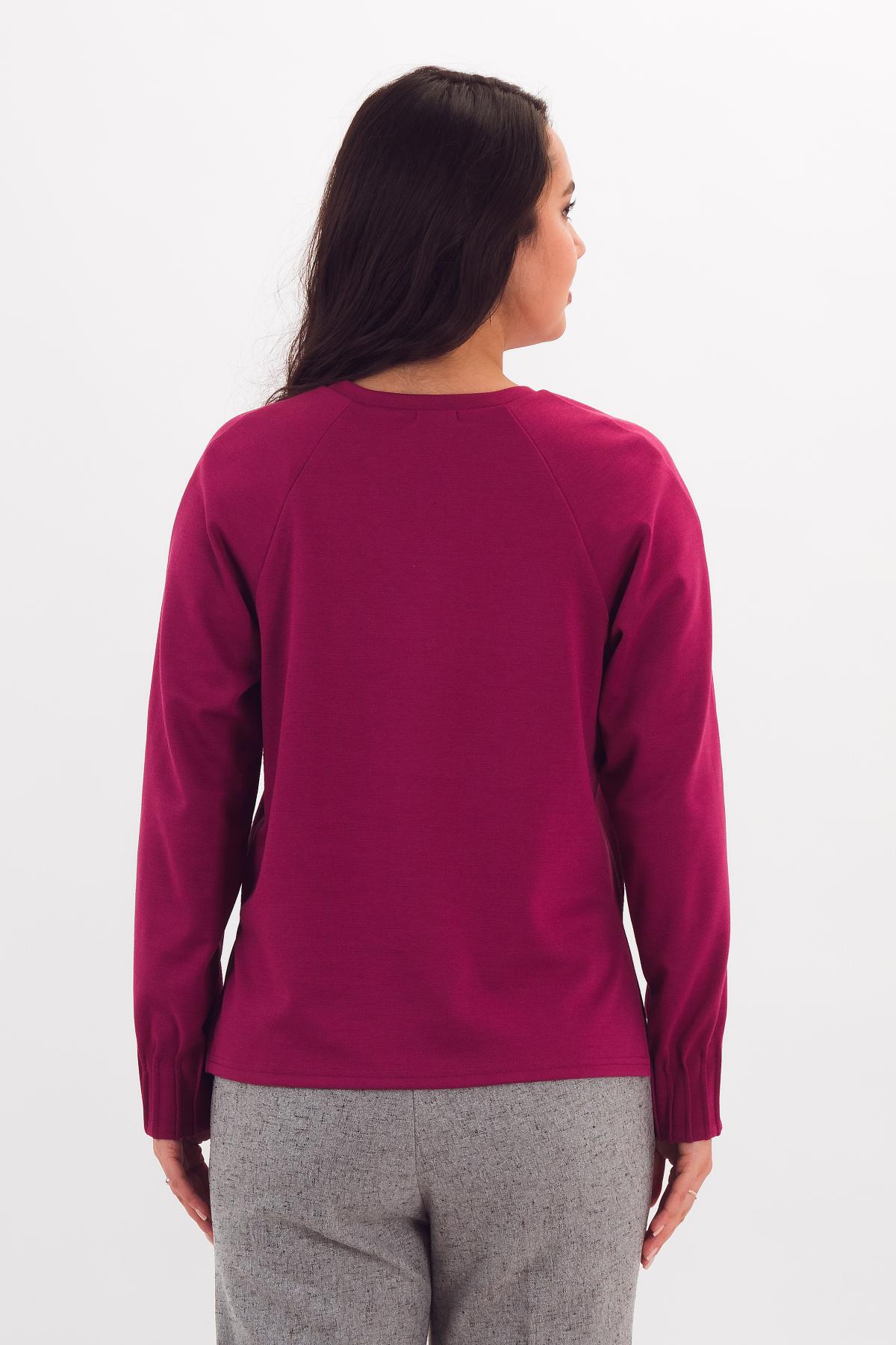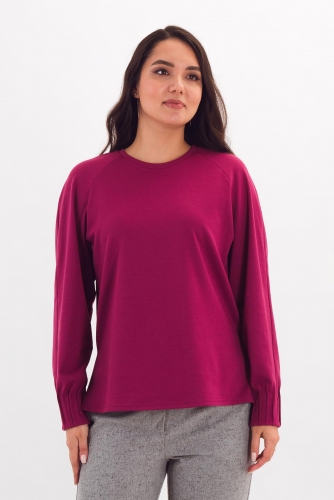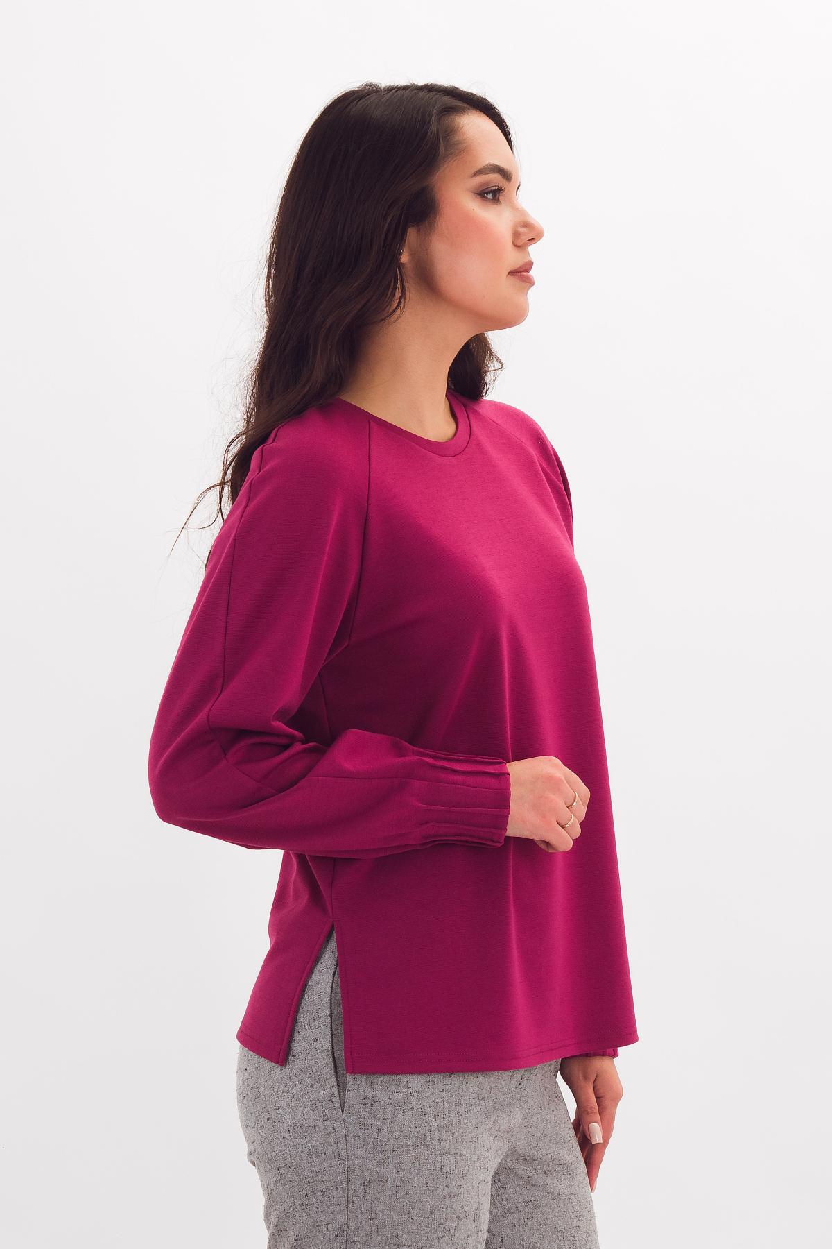 Описание: Стильный джемпер прямого силуэта обеспечит вам комфорт в движении, благодаоря разрезам по боковым швам изделиия. А защипы по низу рукава-ренглан - добавят в ваш образ оригинальности.