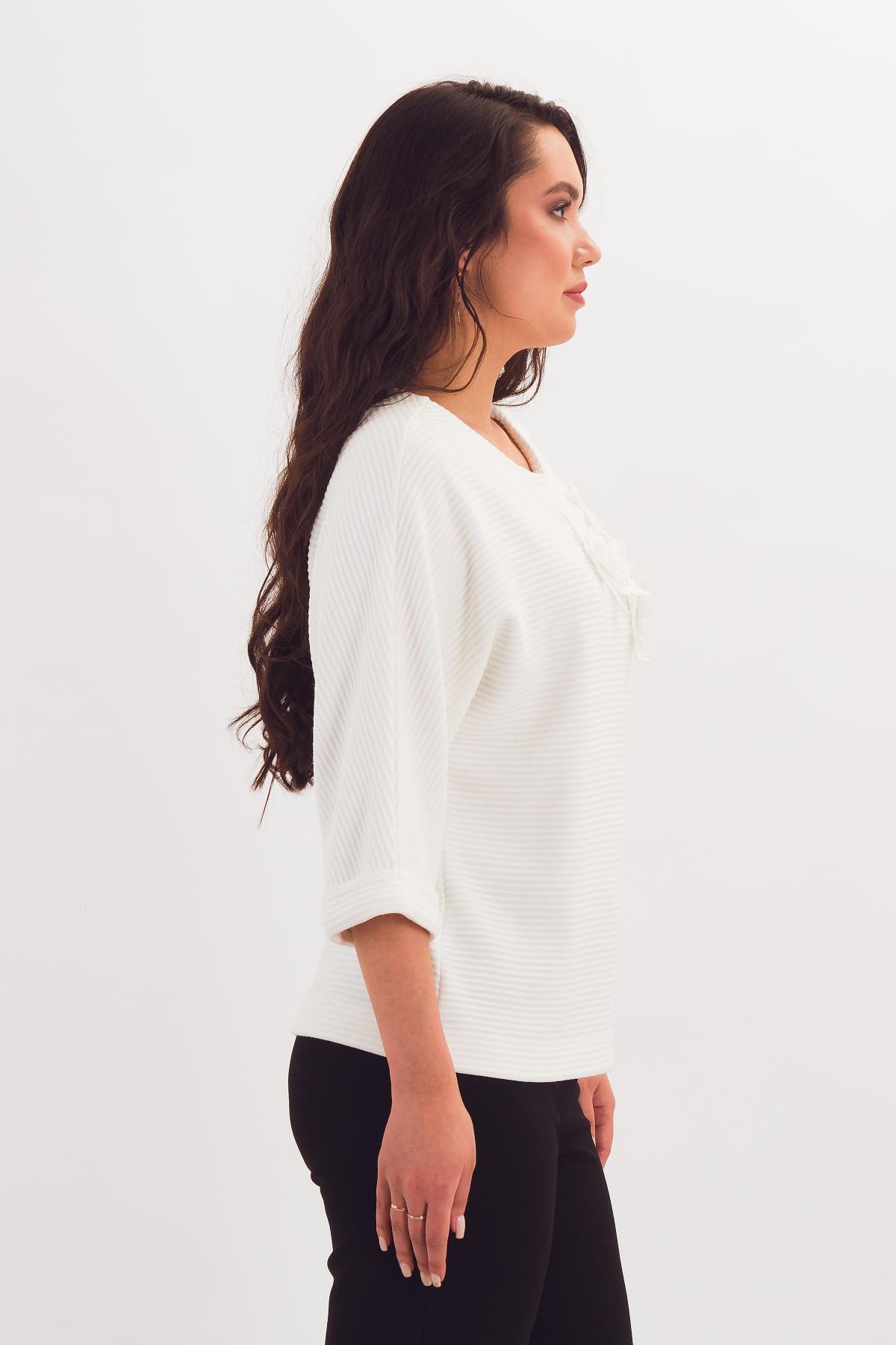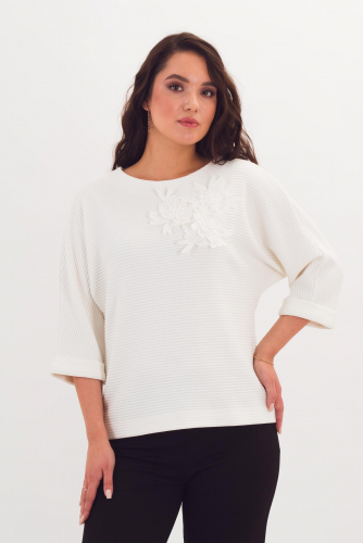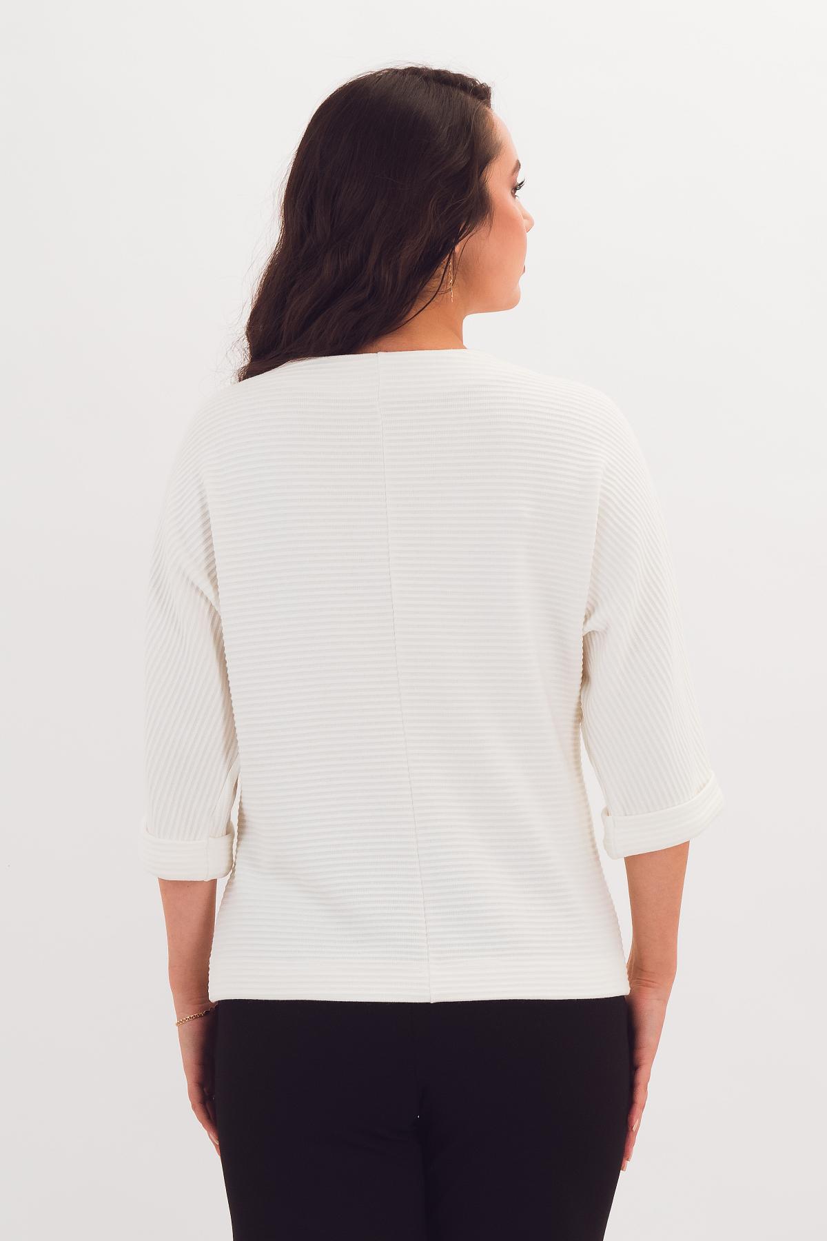 Описание: Блузка летучая мышь - стильный силуэт в сочетании с простым кроем. Универсальный полукруглый вырез горловины. Низ рукава оформлен манжетой.