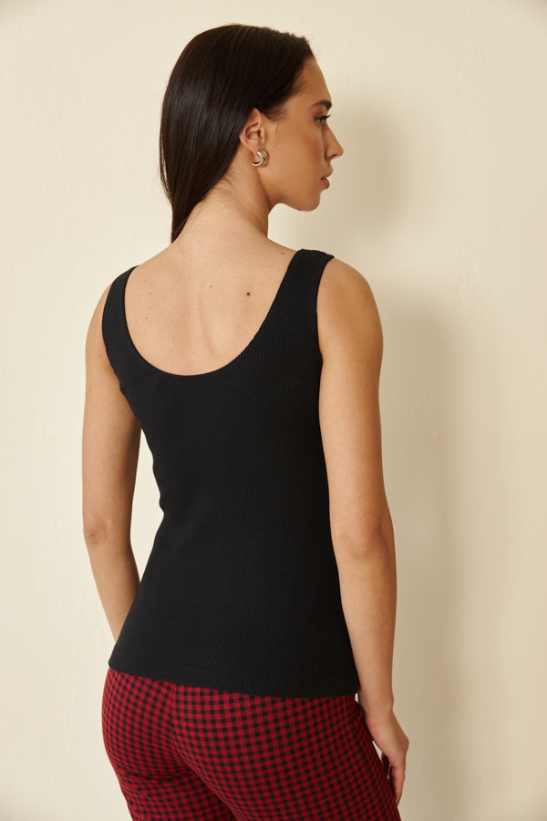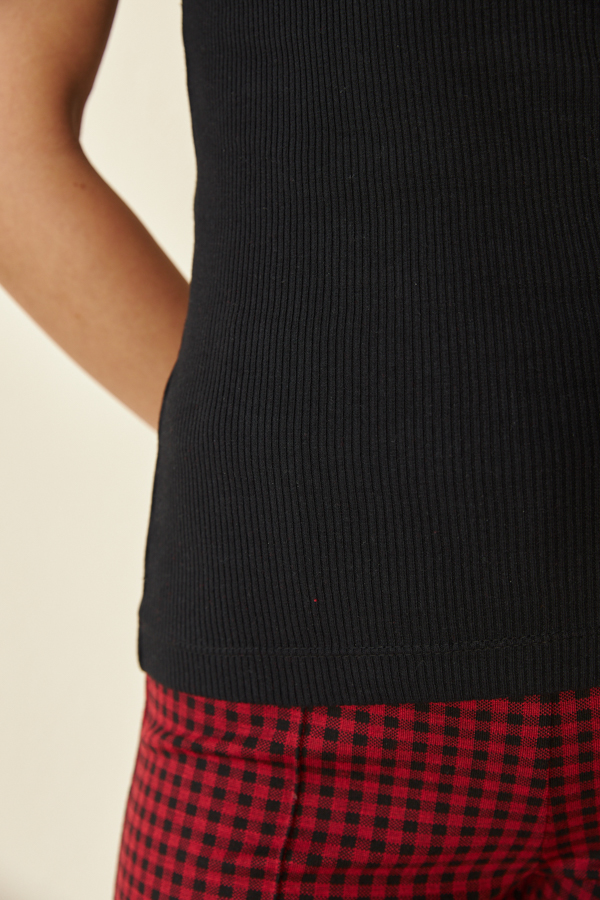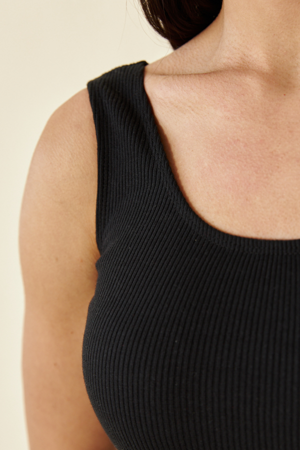 Топ на лямках из эластичного полотна в рубчик. Прилегающий силуэт.