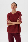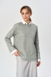 Джемпер трикотажный женский цельновязаный без боковых и плечевых швов. Вырез горловины в форме «лодочка». Спереди вывязанные карманы. По низу рукава отворот.