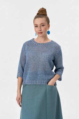 Джемпер укороченный умеренного объема на резинке. Рукав втачной до локтя. Вырез горловины округлой формы.