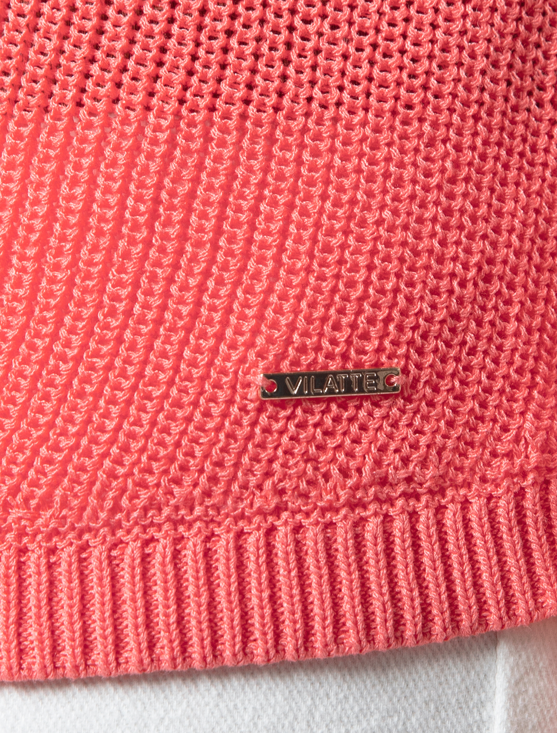 Джемпер фактурной вязки из пряжи на основе крученой вискозы с лиоцеллом. Спущенная линия плеч подчеркивает расслабленный и непринужденный стиль. Шелковистое но достаточно плотное изделие, приятно ощущается на теле, поэтому в нем будет комфортно даже на голое тело в жаркое время года.