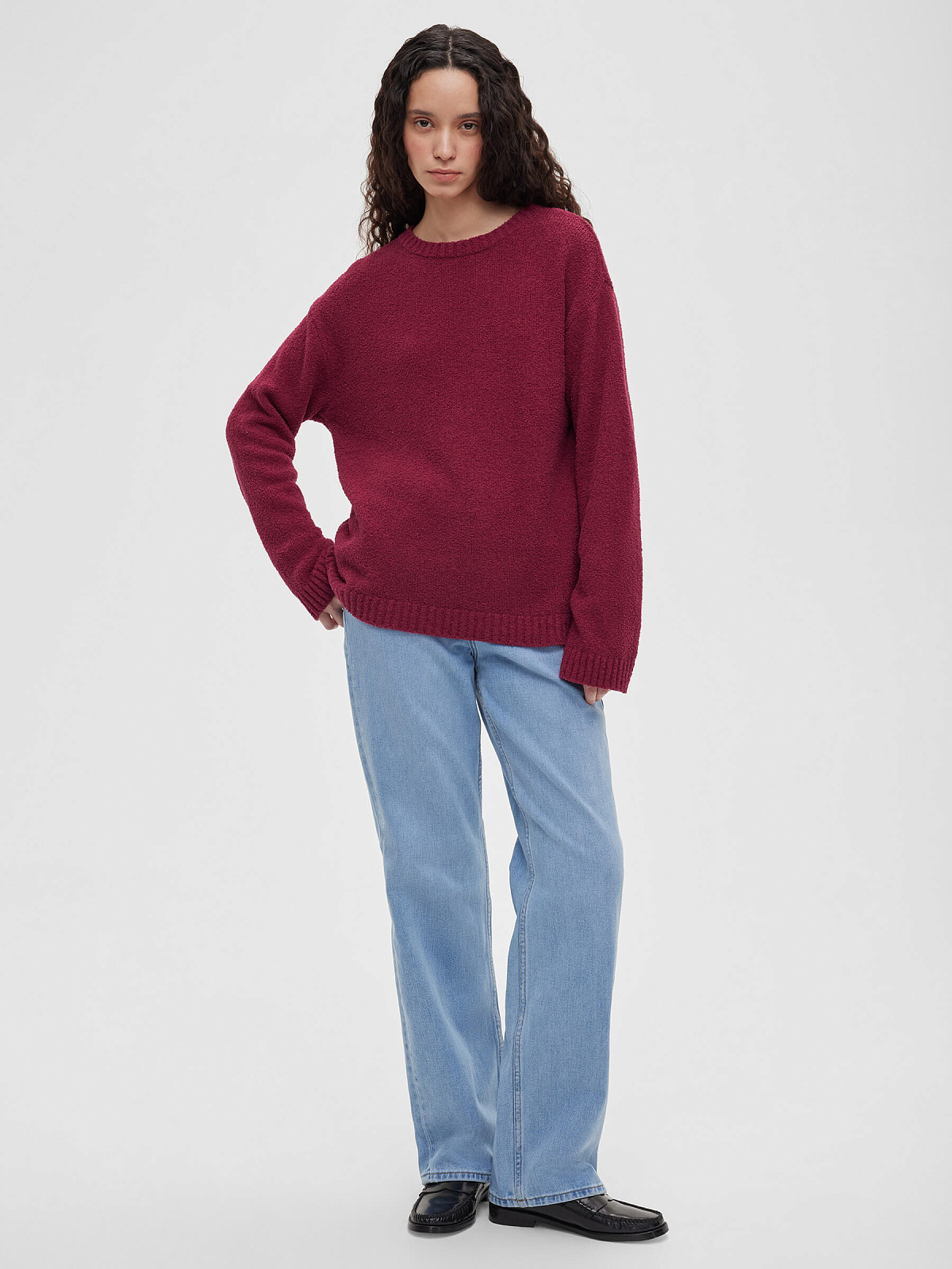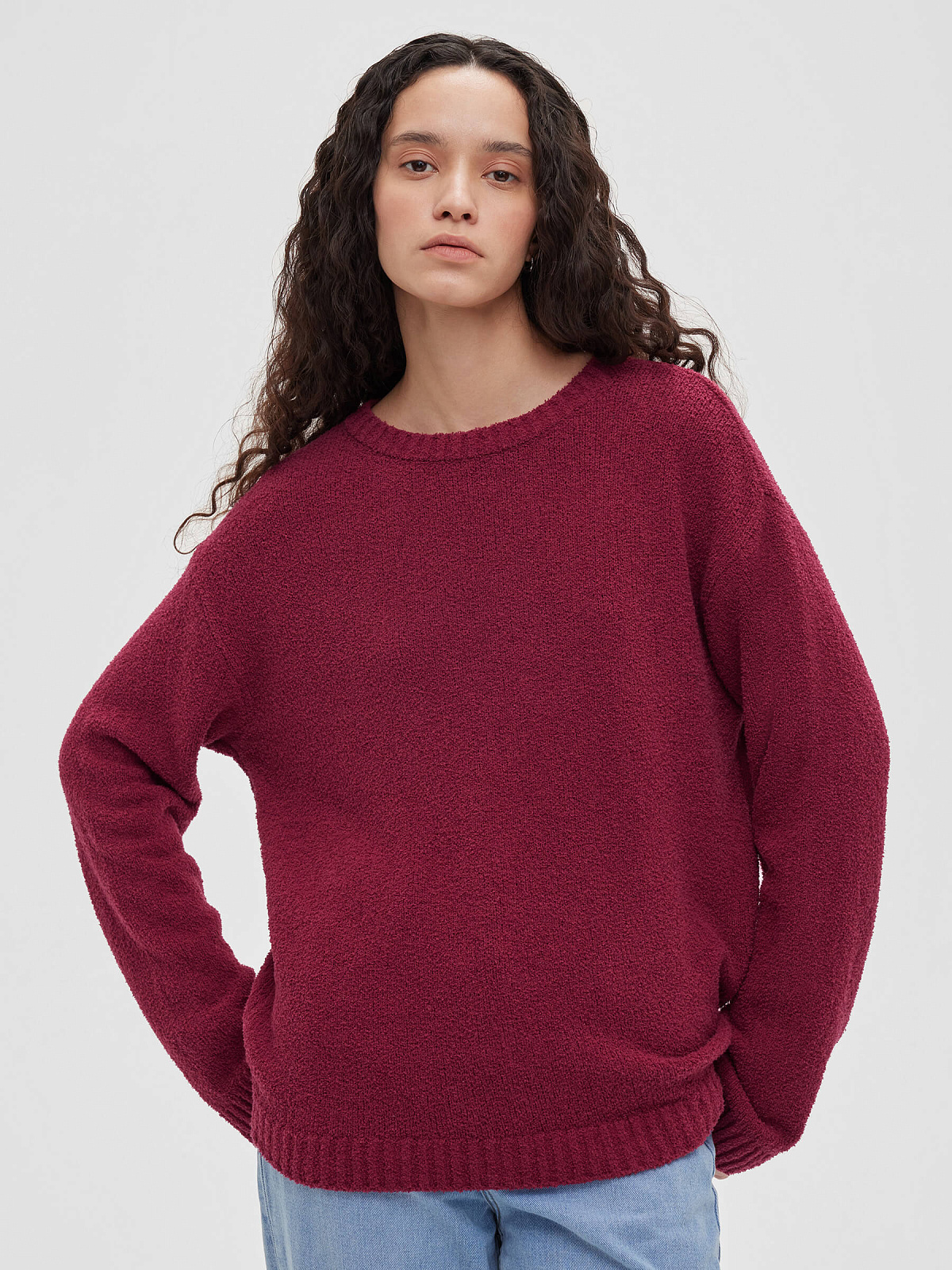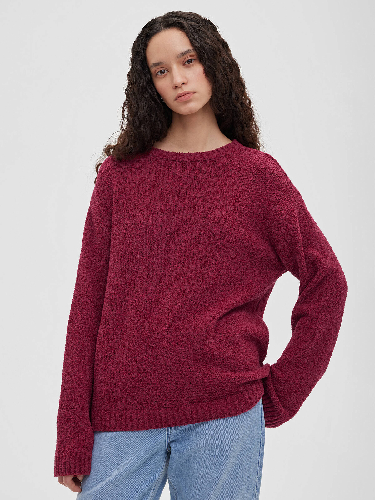Джемпер из хлопка букле, бордовый