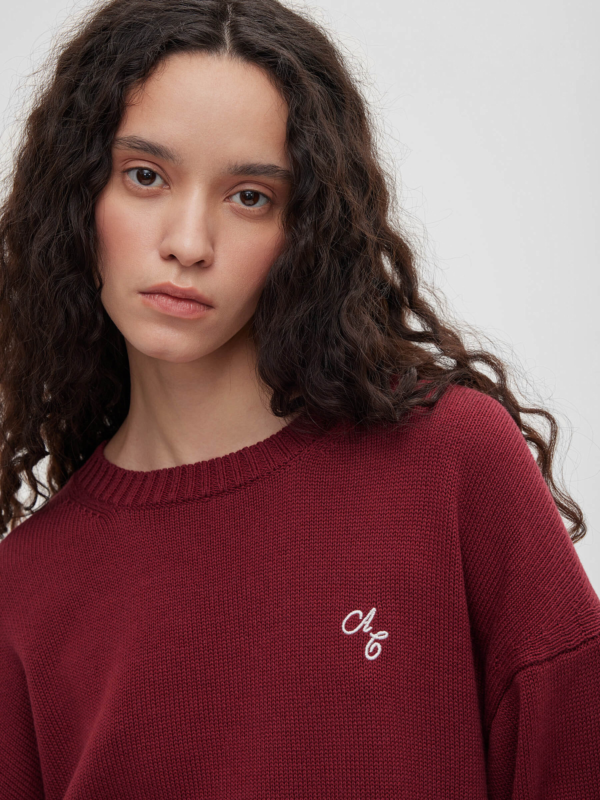 Джемпер из хлопка свободного кроя со спущенным плечом и круглым вырезом горловины. Контрастная вышивка по переду.