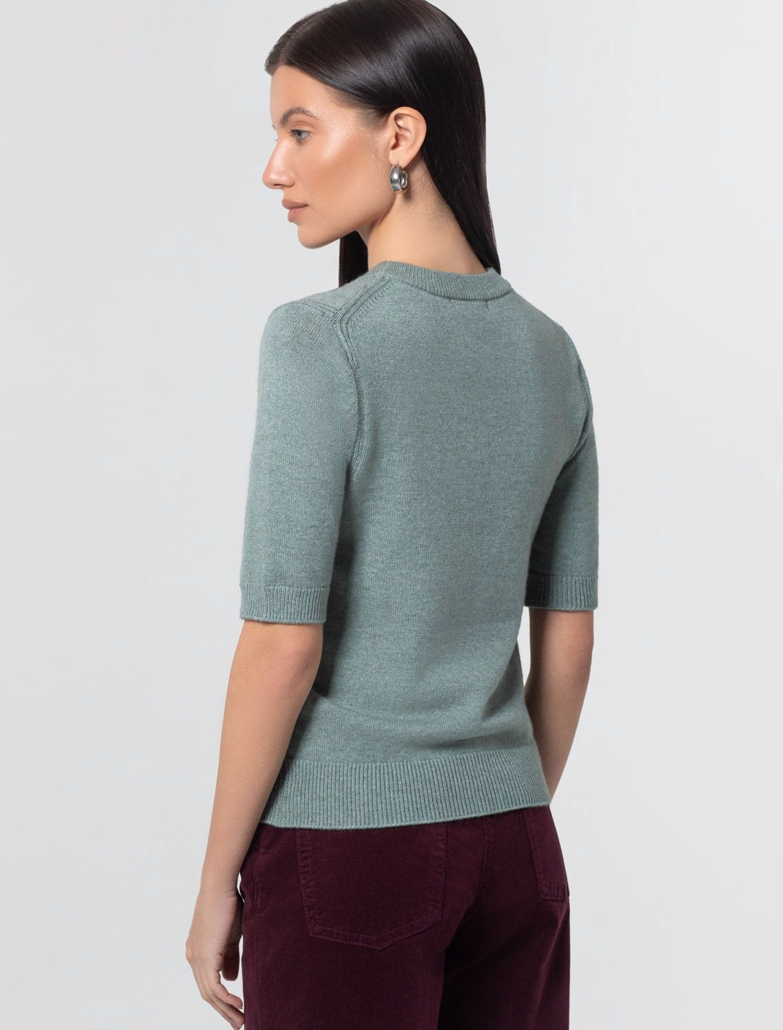 Джемпер с коротким рукавом выполнен из мягкой пряжи с кашемиром. Лаконичная модель с круглым воротом идеально сидит по фигуре. Благодаря своей универсальности подойдет для любого гардероба и в офисный дресс-код. Мягкая пряжа очень приятная к телу, поддержит комфорт на протяжении всего дня, при этом не перегревая. Сочетается в костюме с брюками D38.013, D38.012 и юбкой D36.016