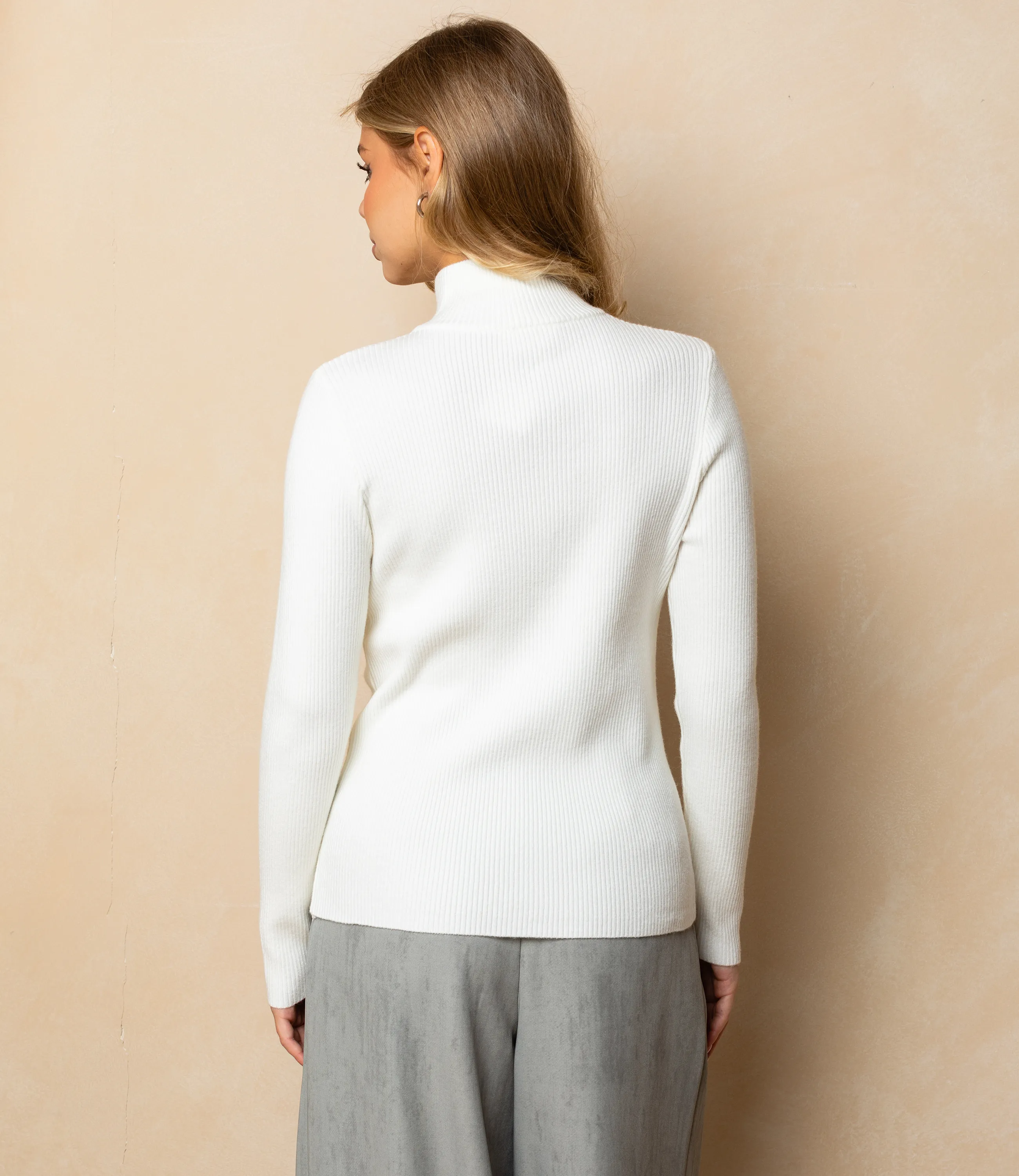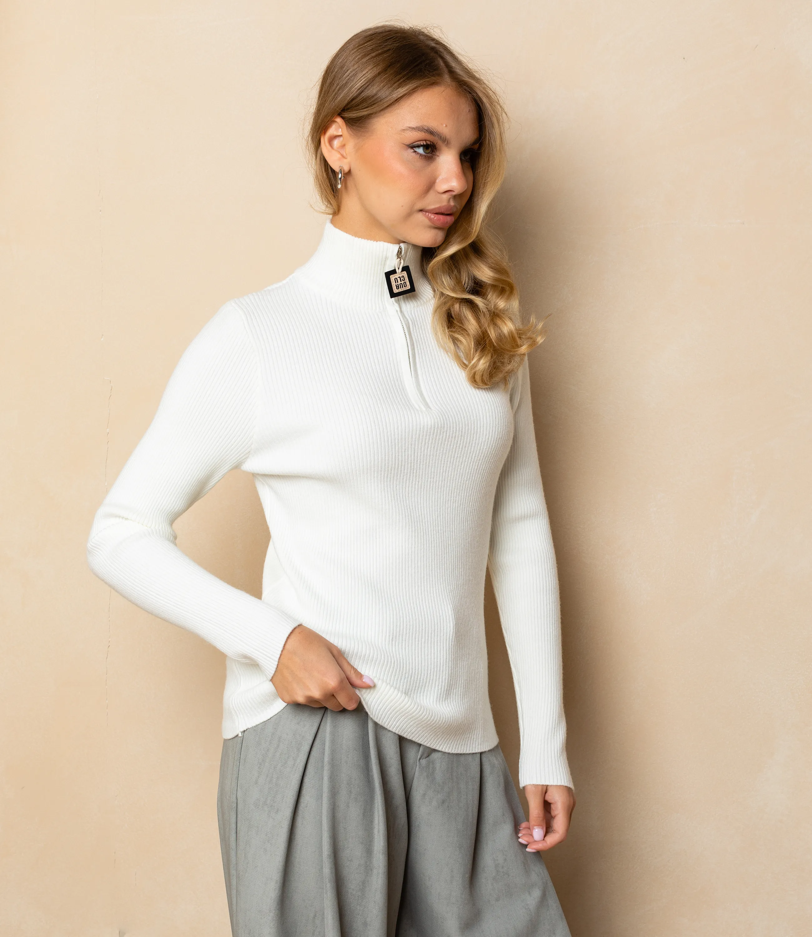 Джемпер это часть гардероба, которая подчёркивает комфорт и индивидуальность каждой покупательницы. Приталенный джемпер с длиной до бедер, облегающий торс, рукава плотно сидят по руке, плечи подчеркиваются за счет аккуратной линии шва. Высокий стойковый воротник с короткой центральной застёжкой-молнией, при застёгивании образует аккуратную стойку, при частичном раскрытии — образует мягкий V‑образный вырез. Для пошива использована ткань 65% хлопка, 30% полиэстера и 5% эластан, сочетание натуральной мягкости и хорошей воздухопроницаемости хлопка с повышенной износостойкостью и стабильностью формы за счёт синтетического волокна. Материал приятен на ощупь, хорошо держит тепло, обладает минимальной усадкой и низкой склонностью к катышению, цвета глубокие и соответствуют фото на сайте, что снижает количество возвратов и повышает лояльность покупателей. Рост модели 168 см., 89-63-90