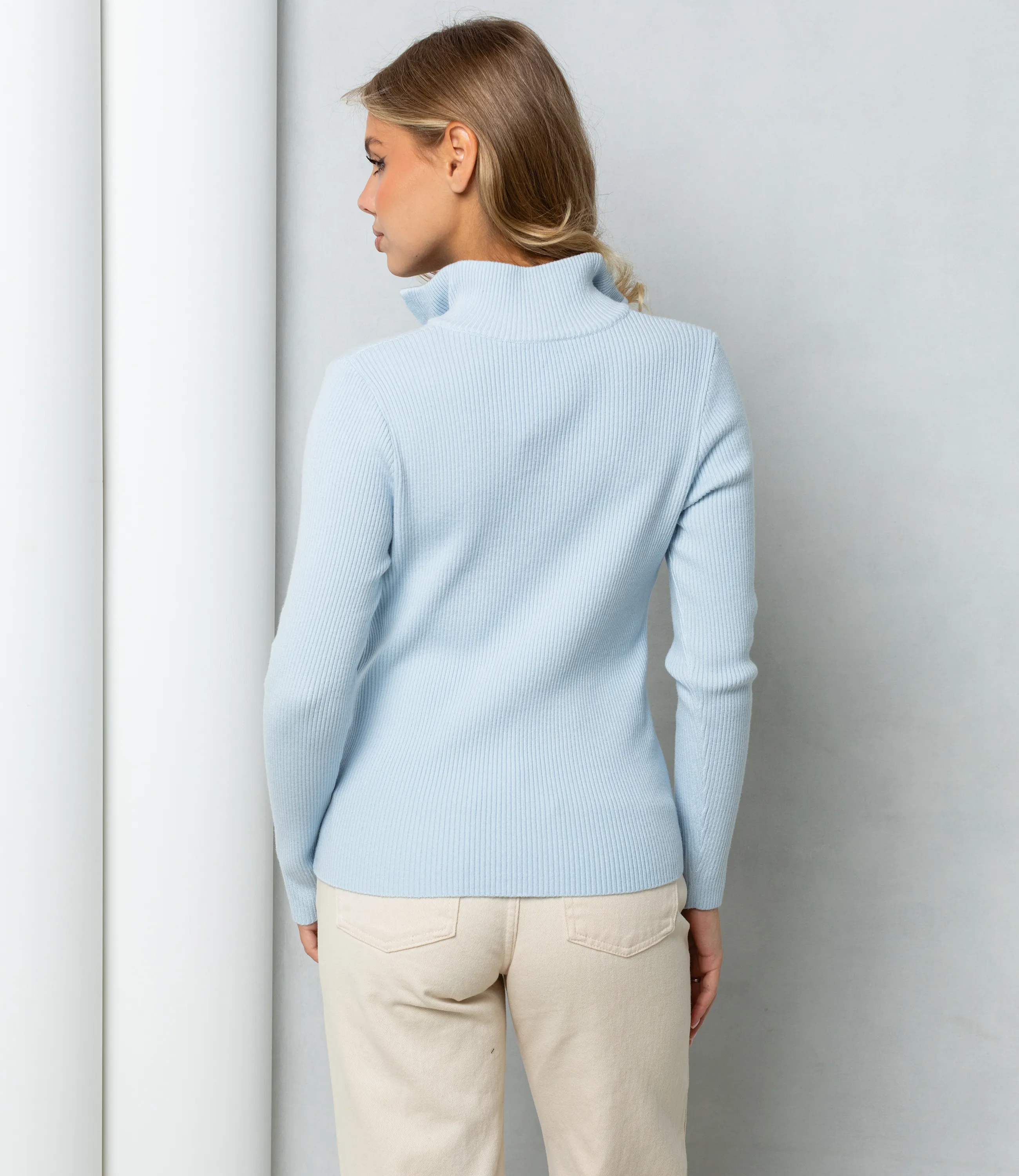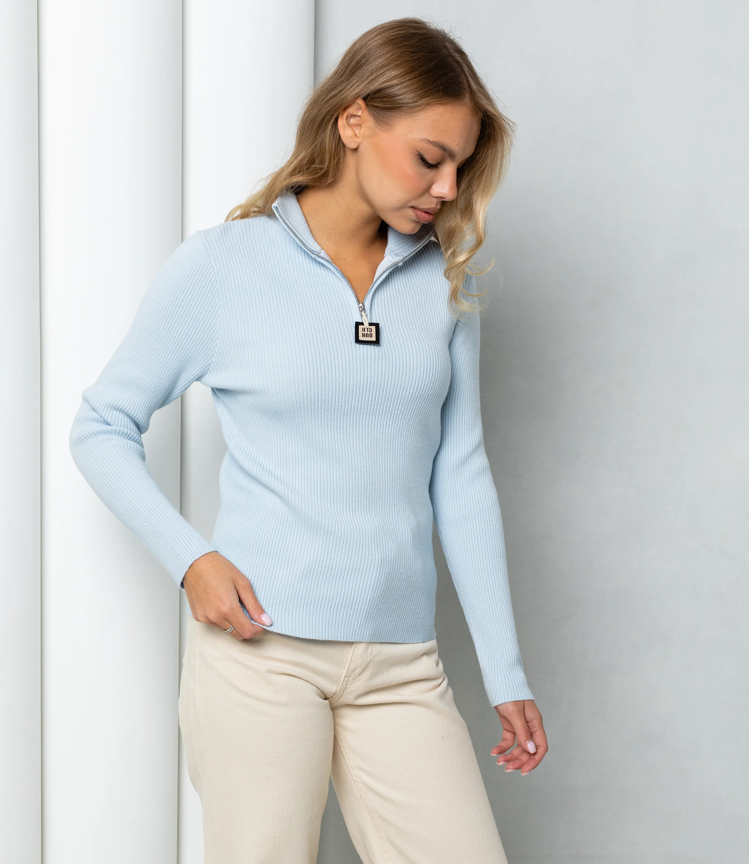 Джемпер это часть гардероба, которая подчёркивает комфорт и индивидуальность каждой покупательницы. Приталенный джемпер с длиной до бедер, облегающий торс, рукава плотно сидят по руке, плечи подчеркиваются за счет аккуратной линии шва. Высокий стойковый воротник с короткой центральной застёжкой-молнией, при застёгивании образует аккуратную стойку, при частичном раскрытии — образует мягкий V‑образный вырез. Для пошива использована ткань 65% хлопка, 30% полиэстера и 5% эластан, сочетание натуральной мягкости и хорошей воздухопроницаемости хлопка с повышенной износостойкостью и стабильностью формы за счёт синтетического волокна. Материал приятен на ощупь, хорошо держит тепло, обладает минимальной усадкой и низкой склонностью к катышению, цвета глубокие и соответствуют фото на сайте, что снижает количество возвратов и повышает лояльность покупателей. Рост модели 168 см., 89-63-90