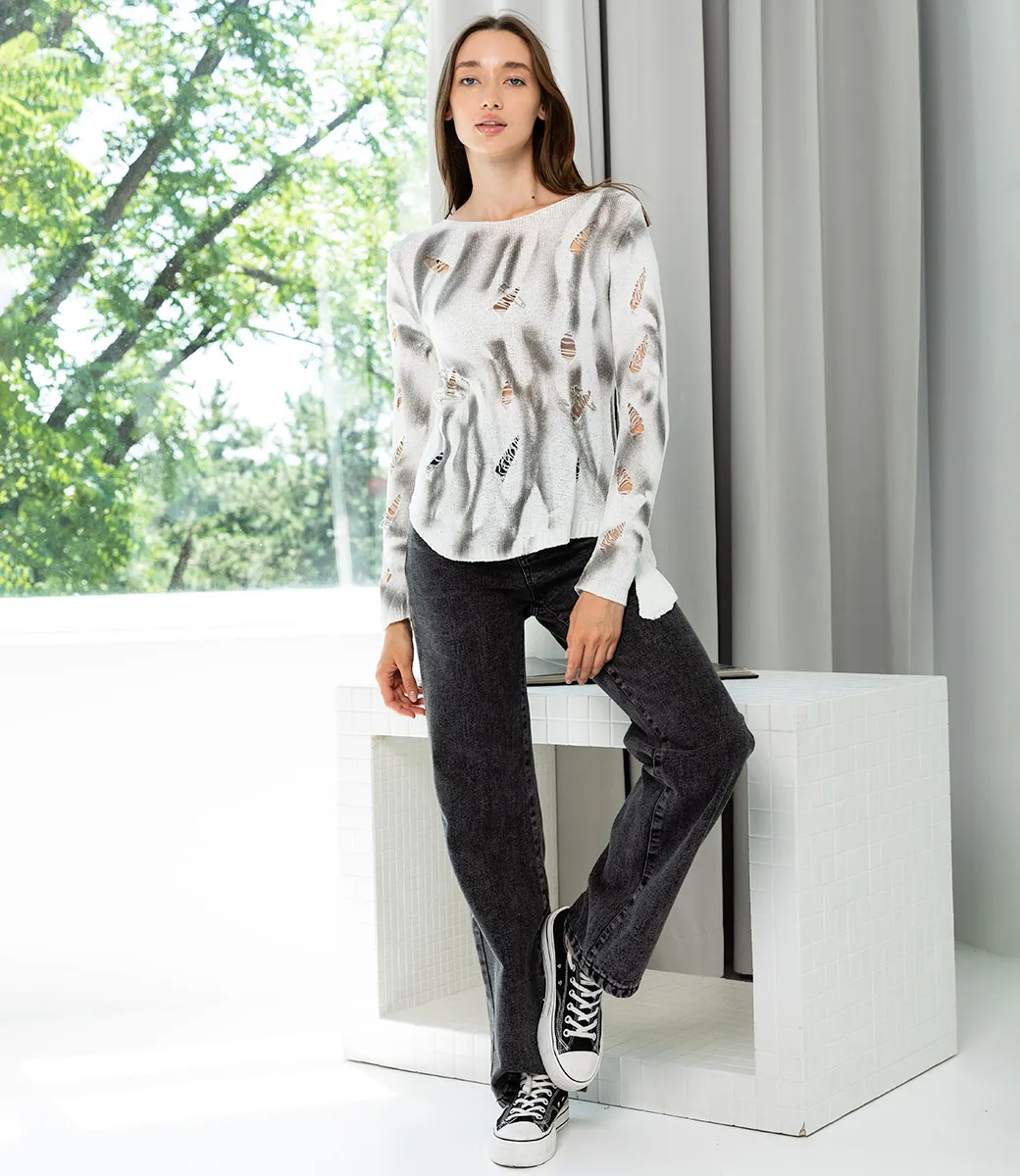 Джемпер – это одежда, которая подчеркивает уникальность каждой представительницы прекрасного пола. Модель джемпера с акцентными рваностями и декорированными булавками отлично подойдет для ярких и эпотажных образов. Его выбирают покупательницы, которые ценят сочетание качества и эксклюзивности. Силуэт подчеркивает привлекательность фигуры. Компания-производитель знает, как разработать стильные и эффектные решения. Для пошива использована ткань 65% хлопок и 35% полиэстер, которая характеризуется отличным качеством. Даже после многих стирок изделие не потеряет первоначальной красоты. Вы будете носить его с радостью. Обратите внимание на дизайн. Он является привлекательным и полностью соответствует фотографии на сайте. Чтобы вы были уверены в размере, мы представили на странице таблицу. Воспользовавшись ею, вы сможете сами сделать мерки и удостовериться. Установленная нами цена является приемлемой. Не откажите себе в удовольствии быть элегантной! Рост модели: 168, параметры: 85-63-92.