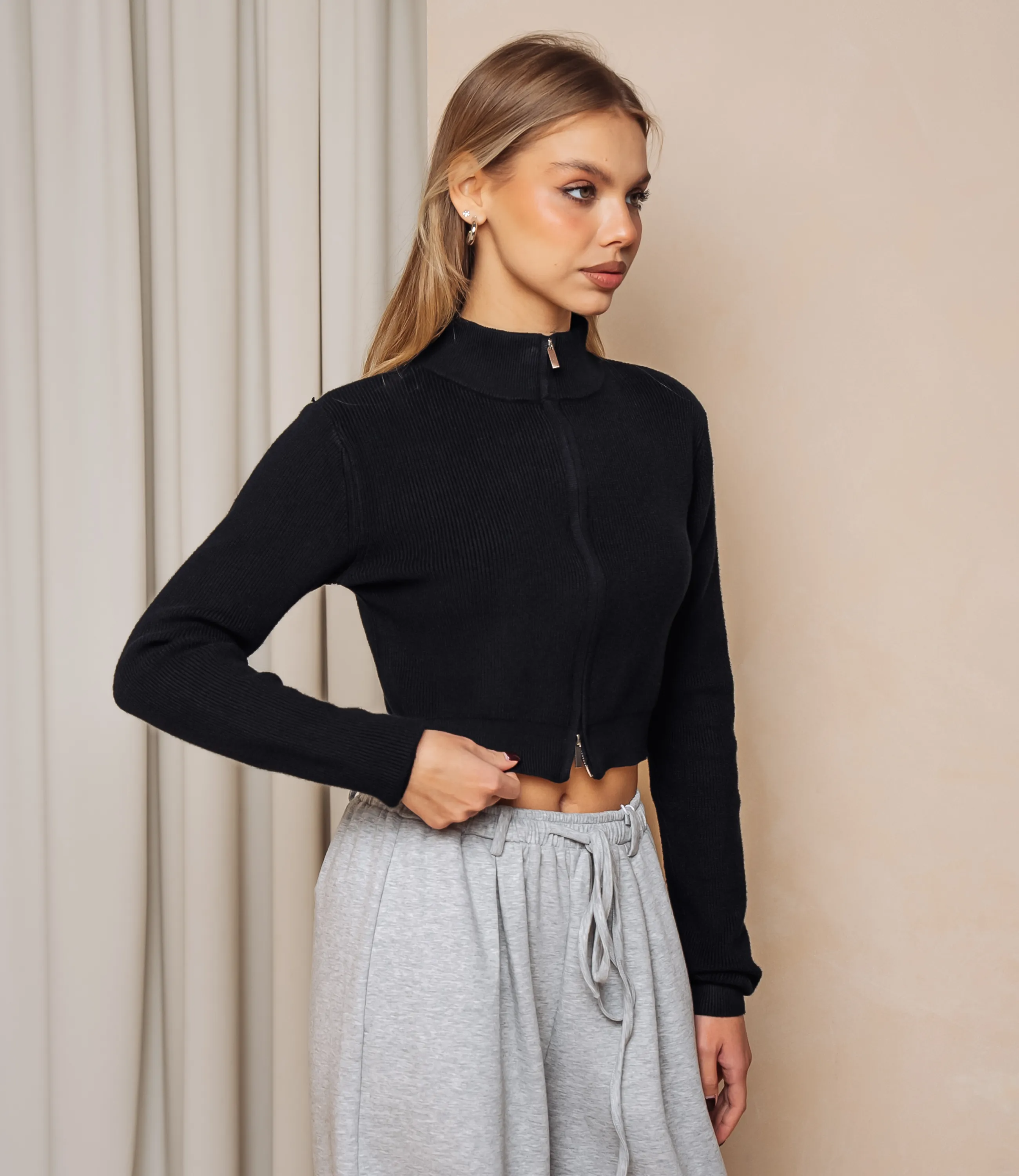 Джемпер — это элегантный и стильный элемент гардероба, который подчеркивает уникальность каждой женщины. Джемпер выполнен в укороченном прямом силуэте с мягко облегающей стойкой и центральной короткой застёжкой-молнией, проходящей от воротника до низкой линии талии; воротник и нижняя кромка оформлены узкой резинкой, обеспечивающей плотную посадку и аккуратный контур. Тело и рукава связаны мелкой трикотажной гладью с равномерной плотностью, рукава длинные, слегка подчеркнуты небольшим объёмом в области плеч и плавно сужаются к запястьям, где завершены узкими манжетами. Состав 65% хлопок, 30% полиэстер и 5% эластан. Для удобства покупателей на странице доступна таблица размеров, что поможет им легко найти идеальный размер. Предложенная цена является доступной, а значит, ваши клиентки смогут с легкостью добавить этот стильный элемент в свой гардероб. Не упустите шанс предложить своим покупателям этот превосходный джемпер, который позволят им чувствовать себя уверенно и элегантно в любой обстановке! Подарите вашим клиентам возможность выделиться и продемонстрировать свой уникальный стиль с этим удивительным изделием! Рост модели 168 см., 89-63-90.