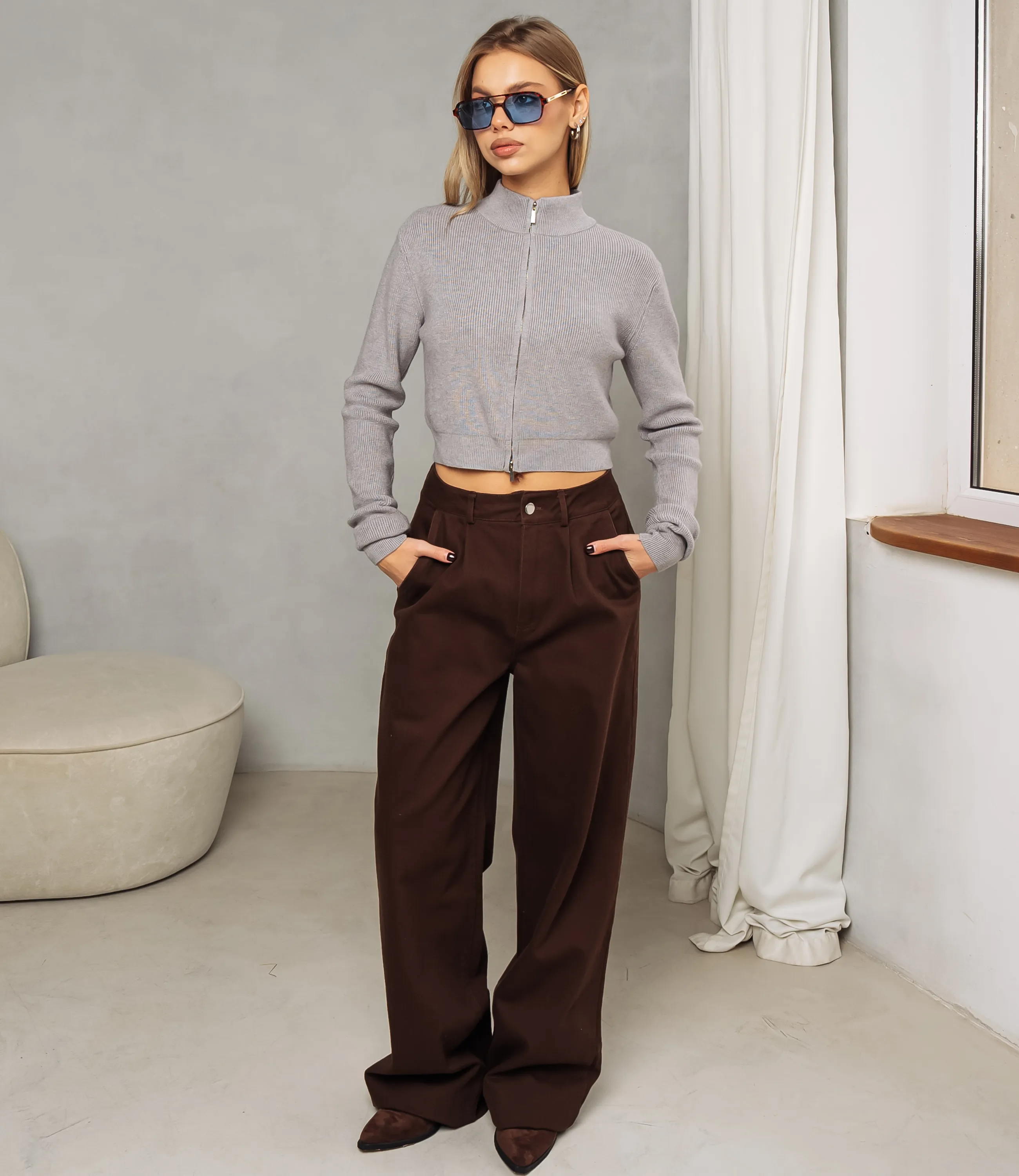 Джемпер — это элегантный и стильный элемент гардероба, который подчеркивает уникальность каждой женщины. Джемпер выполнен в укороченном прямом силуэте с мягко облегающей стойкой и центральной короткой застёжкой-молнией, проходящей от воротника до низкой линии талии; воротник и нижняя кромка оформлены узкой резинкой, обеспечивающей плотную посадку и аккуратный контур. Тело и рукава связаны мелкой трикотажной гладью с равномерной плотностью, рукава длинные, слегка подчеркнуты небольшим объёмом в области плеч и плавно сужаются к запястьям, где завершены узкими манжетами. Состав 65% хлопок, 30% полиэстер и 5% эластан. Для удобства покупателей на странице доступна таблица размеров, что поможет им легко найти идеальный размер. Предложенная цена является доступной, а значит, ваши клиентки смогут с легкостью добавить этот стильный элемент в свой гардероб. Не упустите шанс предложить своим покупателям этот превосходный джемпер, который позволят им чувствовать себя уверенно и элегантно в любой обстановке! Подарите вашим клиентам возможность выделиться и продемонстрировать свой уникальный стиль с этим удивительным изделием! Рост модели 168 см., 89-63-90.