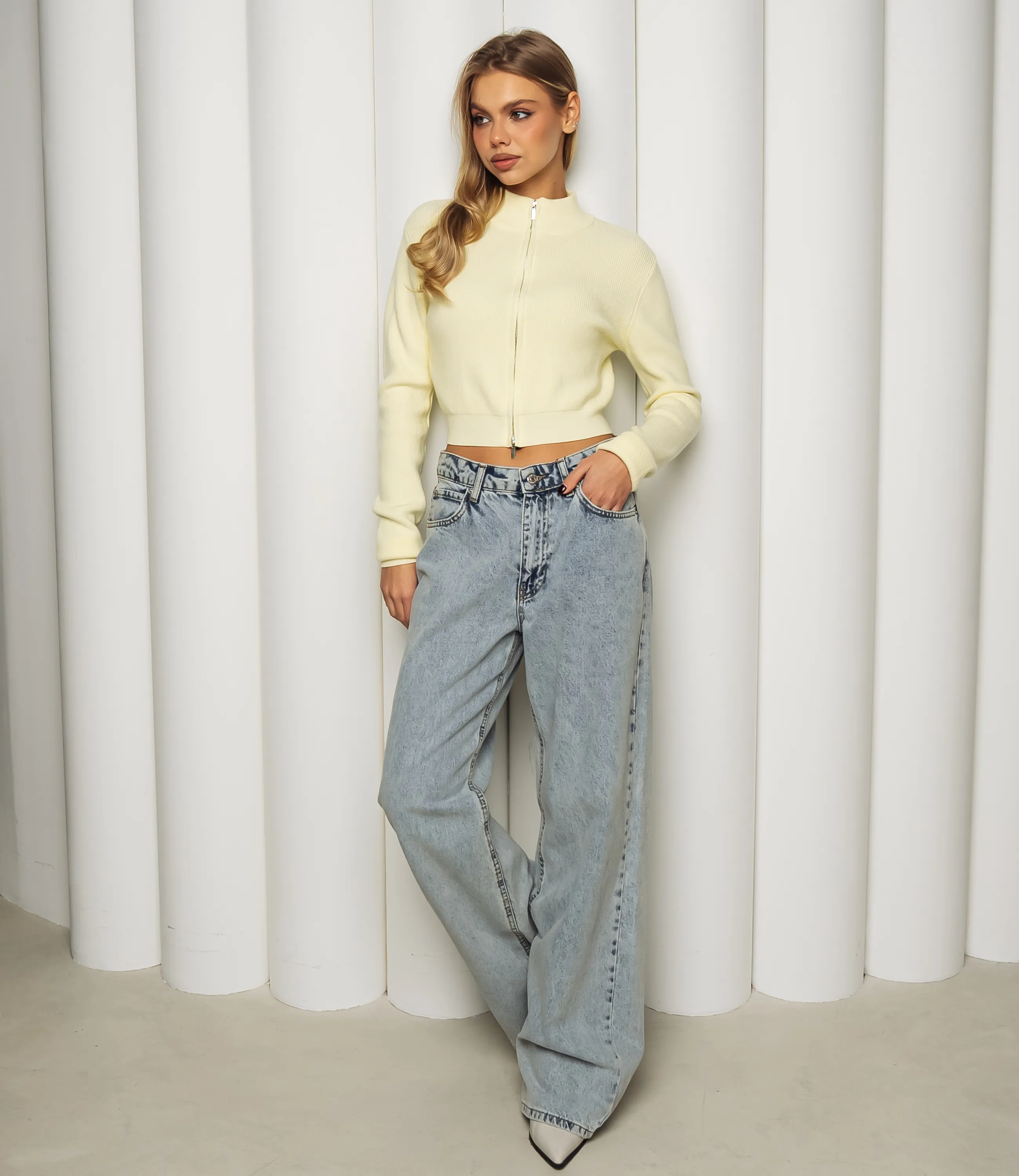 Джемпер — это элегантный и стильный элемент гардероба, который подчеркивает уникальность каждой женщины. Джемпер выполнен в укороченном прямом силуэте с мягко облегающей стойкой и центральной короткой застёжкой-молнией, проходящей от воротника до низкой линии талии; воротник и нижняя кромка оформлены узкой резинкой, обеспечивающей плотную посадку и аккуратный контур. Тело и рукава связаны мелкой трикотажной гладью с равномерной плотностью, рукава длинные, слегка подчеркнуты небольшим объёмом в области плеч и плавно сужаются к запястьям, где завершены узкими манжетами. Состав 65% хлопок, 30% полиэстер и 5% эластан. Для удобства покупателей на странице доступна таблица размеров, что поможет им легко найти идеальный размер. Предложенная цена является доступной, а значит, ваши клиентки смогут с легкостью добавить этот стильный элемент в свой гардероб. Не упустите шанс предложить своим покупателям этот превосходный джемпер, который позволят им чувствовать себя уверенно и элегантно в любой обстановке! Подарите вашим клиентам возможность выделиться и продемонстрировать свой уникальный стиль с этим удивительным изделием! Рост модели 168 см., 89-63-90.