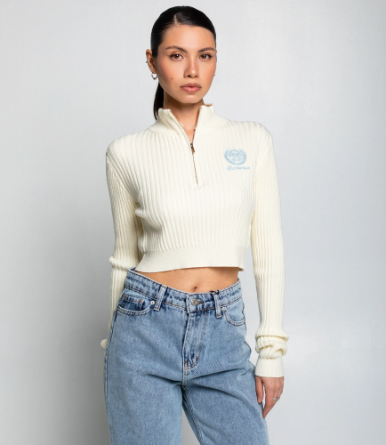 Джемпер — это элегантный и стильный элемент гардероба, который подчеркивает уникальность каждой женщины. Джемпер с укороченным силуэтом и плотно облегающей резинкой по нижнему краю, доходящей до линии талии; выполнен из плотного ребристого трикотажа с вертикальными рельефными полосами, создающими фактуру и лёгкую эластичность. Воротник короткая стойка с центральной застёжкой-молнией, начинающейся у горловины и доходящей до груди, позволяющей варьировать посадку и открытость декольте; воротник и манжеты связаны более плотной резинкой для уплотнения краёв. Рукава длинные, слегка прилегающие по длине и форме, с аккуратными швами в проймах и втачными плечами; запястья оформлены удлинёнными манжетами, частично закрывающими кисть. На левой стороне груди декоративная вышивка с эмблемой и надписью. Состав 65% хлопок, 30% полиэстер и 5% эластан. Для удобства покупателей на странице доступна таблица размеров, что поможет им легко найти идеальный размер. Предложенная цена является доступной, а значит, ваши клиентки смогут с легкостью добавить этот стильный элемент в свой гардероб. Не упустите шанс предложить своим покупателям этот превосходный джемпер, который позволят им чувствовать себя уверенно и элегантно в любой обстановке! Подарите вашим клиентам возможность выделиться и продемонстрировать свой уникальный стиль с этим удивительным изделием! Рост модели 164, 83-61-89.