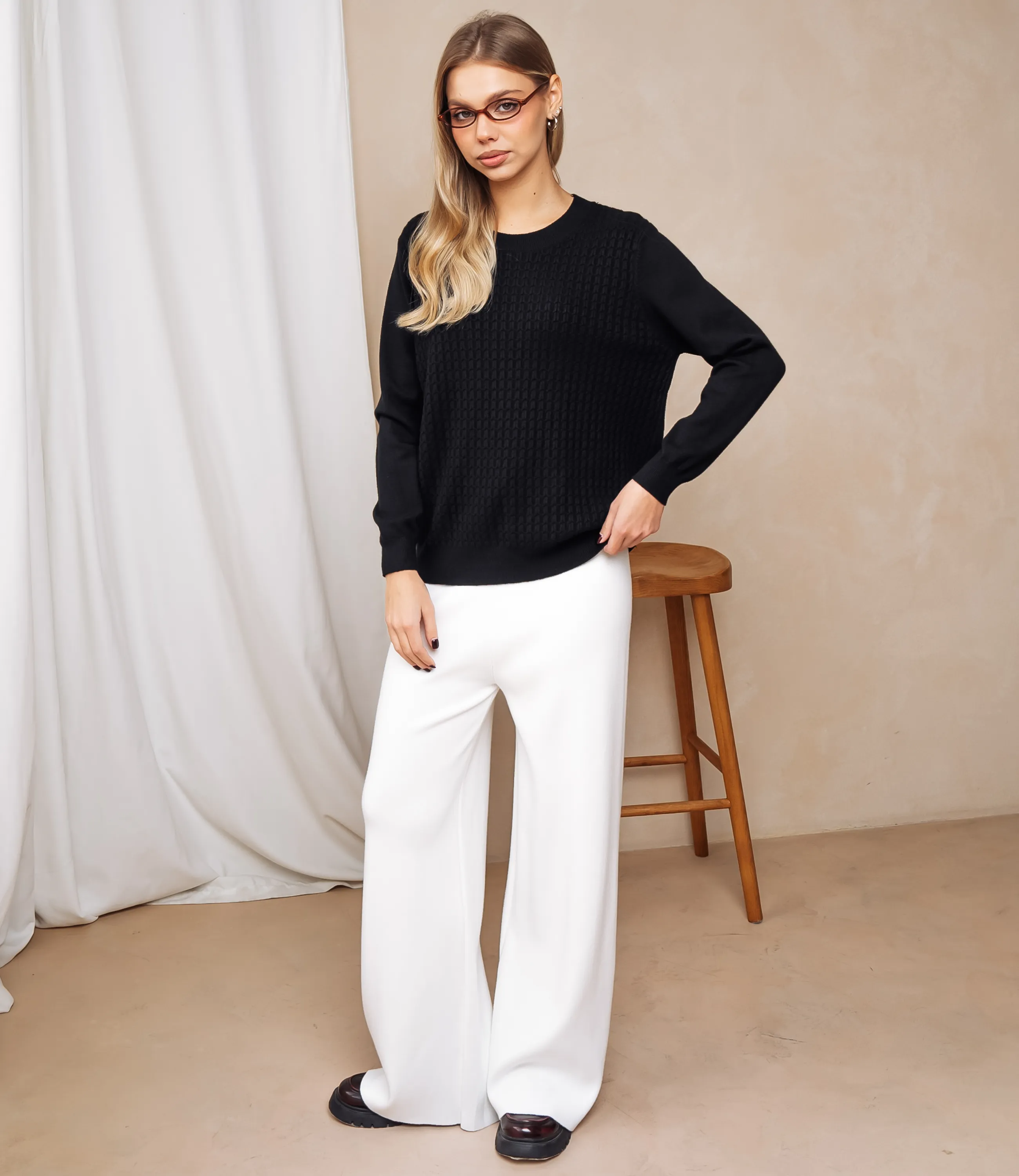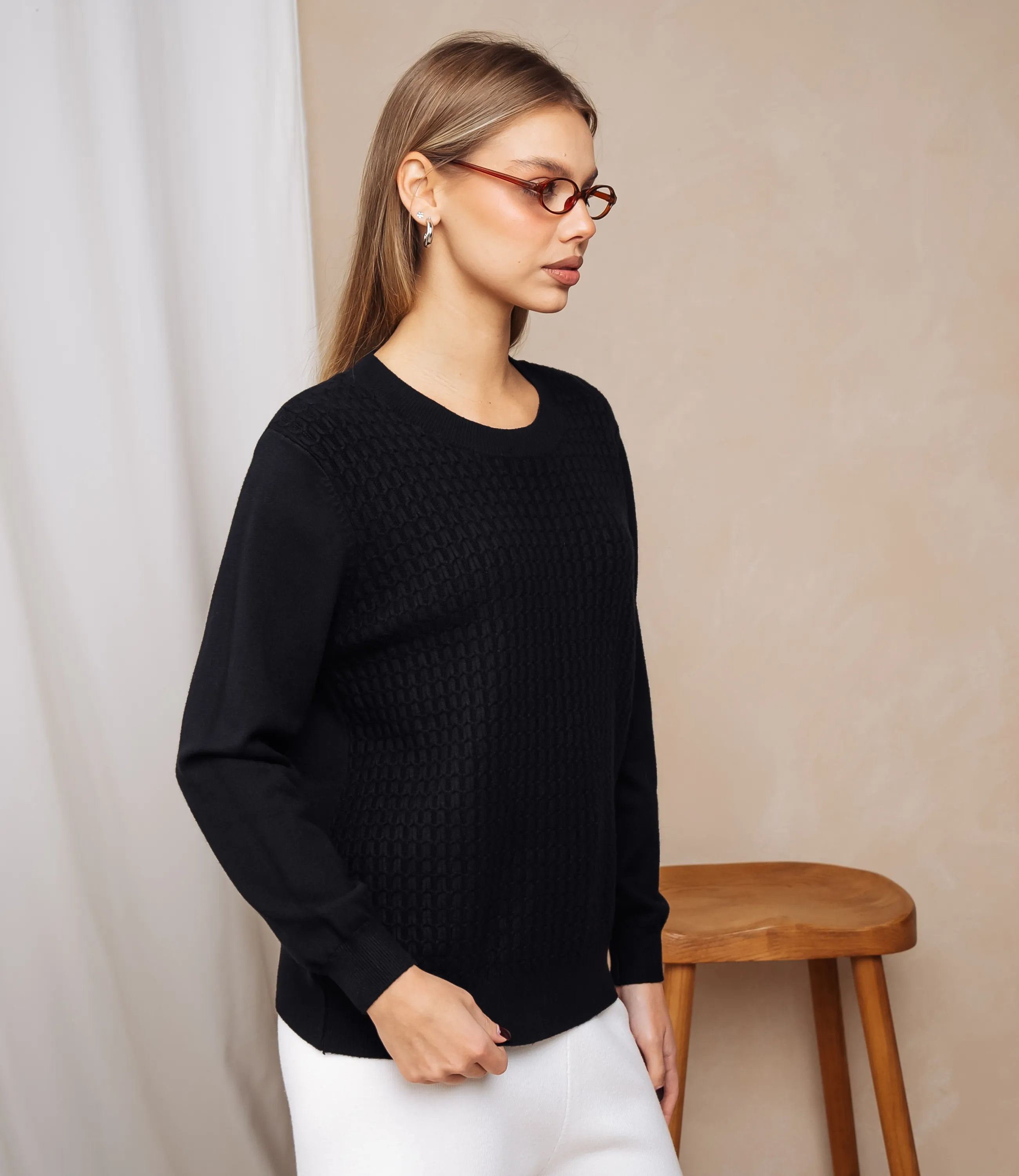 Джемпер — это элегантный и стильный элемент гардероба, который подчеркивает уникальность каждой женщины. Джемпер выполнен в прямом, слегка свободном крое с классической длиной до бедер и аккуратной резинкой по низу, которая мягко фиксирует силуэт; горловина круглая, выполнена в тонкой трикотажной резинке, обеспечивающей плотную, но комфортную посадку у шеи. Лицевая часть украшена плотным рельефным узором, образующим структурированную фактуру и придающим изделию уютную, чуть объёмную поверхность, тогда как рукава и спинка связаны гладкой трикотажной гладью, создавая контраст текстур. Рукава длинные с чуть заметным увеличением в области плеч и сужением к запястьям за счёт узких манжет, которые плотно облегают запястье и удерживают форму. Швы аккуратные, выполнены плоской обработкой, воротниковая и нижняя кромки подкреплены мелкой ребристой вязкой для дополнительной прочности. Состав 65% хлопок, 30% акрил и 5% эластан. Для удобства покупателей на странице доступна таблица размеров, что поможет им легко найти идеальный размер. Предложенная цена является доступной, а значит, ваши клиентки смогут с легкостью добавить этот стильный элемент в свой гардероб. Не упустите шанс предложить своим покупателям этот превосходный джемпер, который позволят им чувствовать себя уверенно и элегантно в любой обстановке! Подарите вашим клиентам возможность выделиться и продемонстрировать свой уникальный стиль с этим удивительным изделием! Рост модели 168 см., 89-63-90.