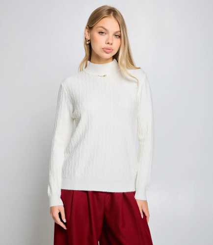 Джемпер — это часть гардероба, которая подчёркивает женственность и утончённость каждой покупательницы. джемпер прямого силуэта с лёгким приталиванием, доходящий до бёдер; выполнен из мягкого трикотажа с тонким фактурным узором «косы». Высокий стойковый воротник средней высоты, манжеты и пояс в плотную резинку для аккуратной посадки, длинные рукава со свободой в локтевой зоне. Дизайн минималистичный и универсальный, подходит для офисного и повседневного образа. Для пошива использована ткань 65% хлопок, 30% полиэстер, 5% эластан: хлопок даёт комфорт и отличную воздухопроницаемость, полиэстер добавляет прочности и стойкости цвета, эластан обеспечивает эластичность и сохранение посадки после носки и стирок. Материал устойчив к частым стиркам, не деформируется и долго сохраняет презентабельный вид, что снижает процент возвратов и рекламаций при розничной продаже. Для оптовых покупателей джемпер представляет собой выгодную и оборотистую позицию: базовый и универсальный дизайн легко интегрируется в разные ценовые и стилистические решения, упрощает формирование размерного ряда и повышает оборачиваемость. Рекомендуем выкладывать модель в зонах базовых коллекций и композиций «повседневный гардероб», предлагать наборы ключевых оттенков, комплекты «верх + низ» и кросс‑селл с пальто, жакетами и юбками для увеличения среднего чека. Цвета и фактура полностью соответствуют фотографиям в карточке товара. Рост 168, 89-63-90.