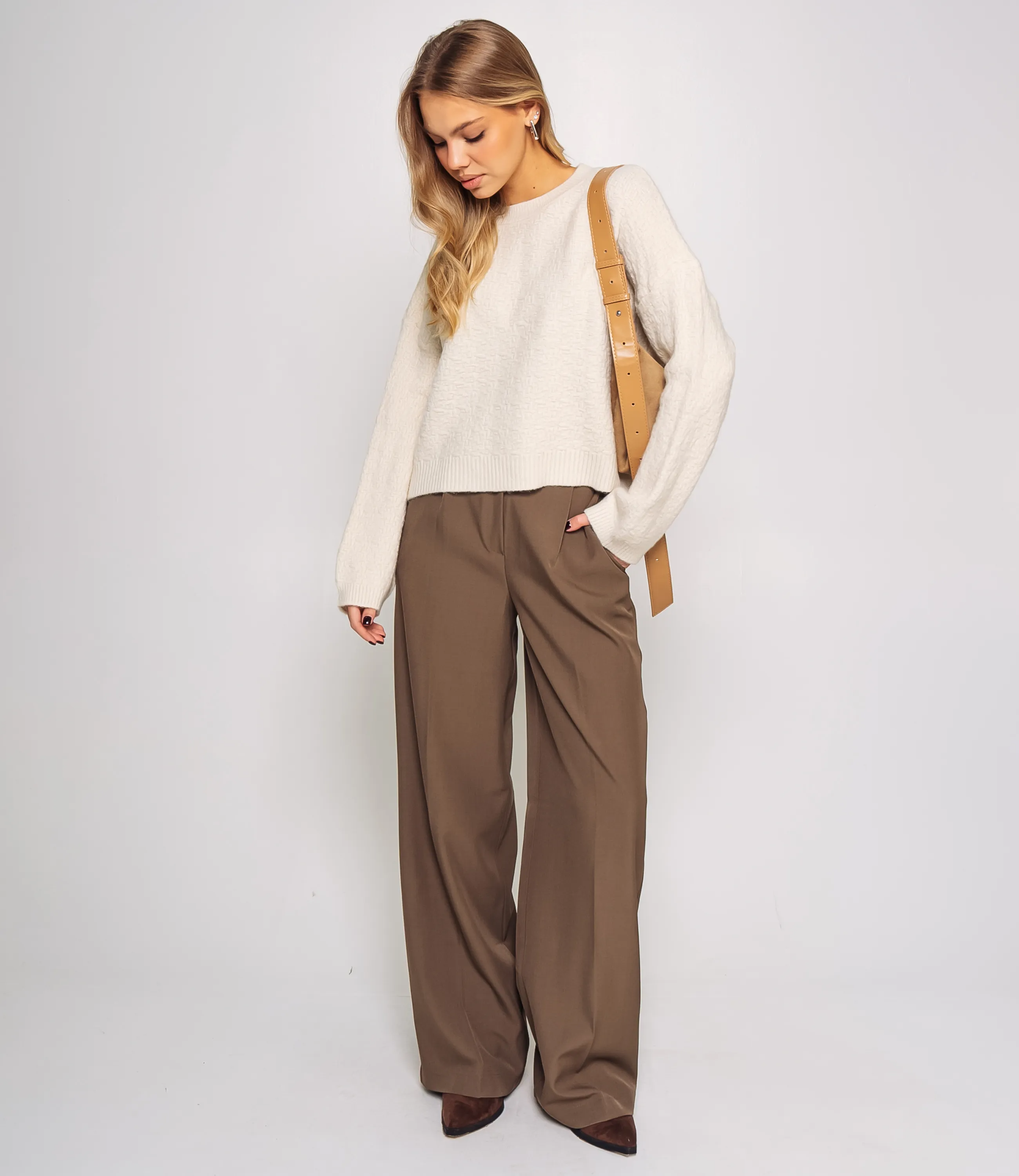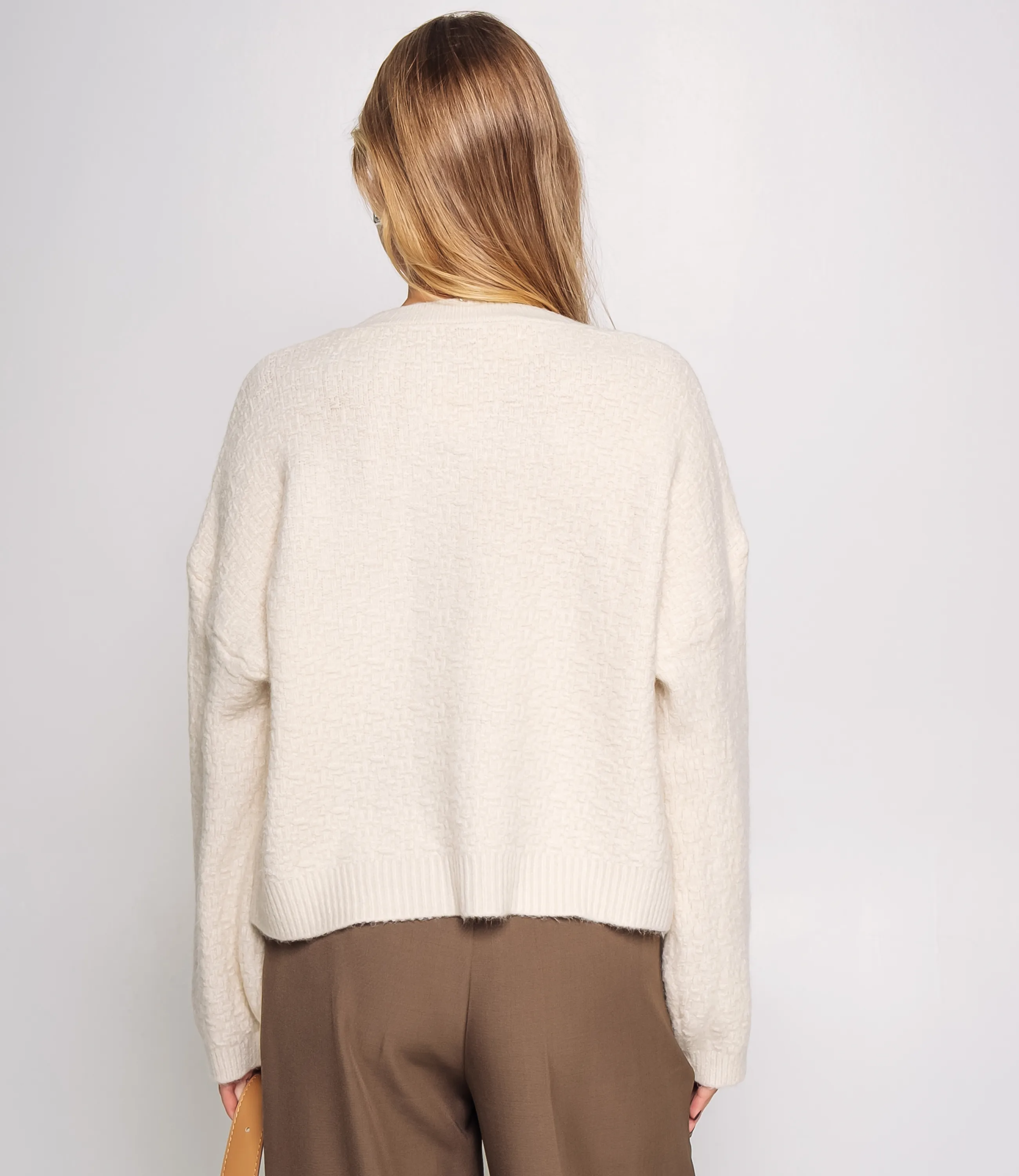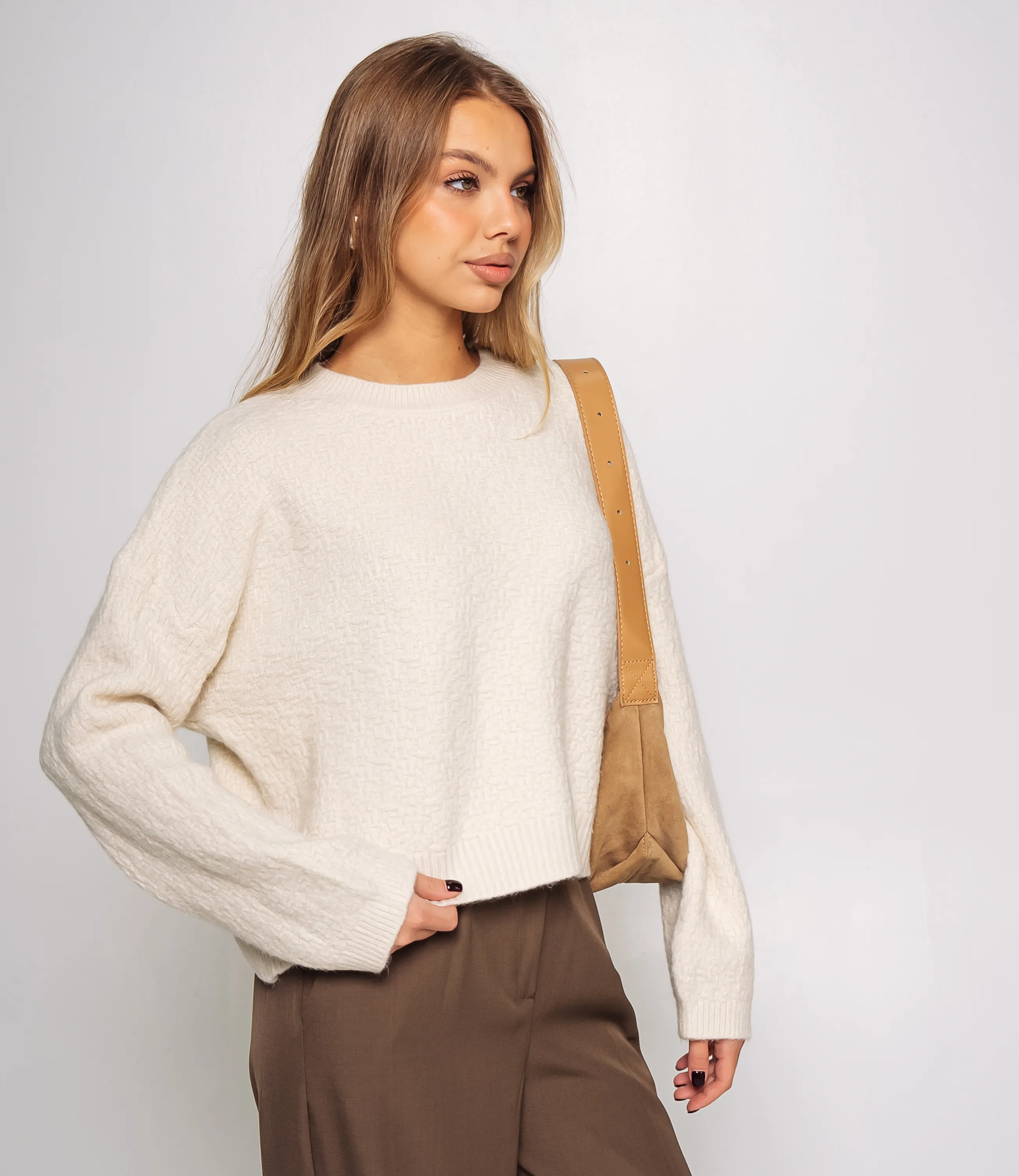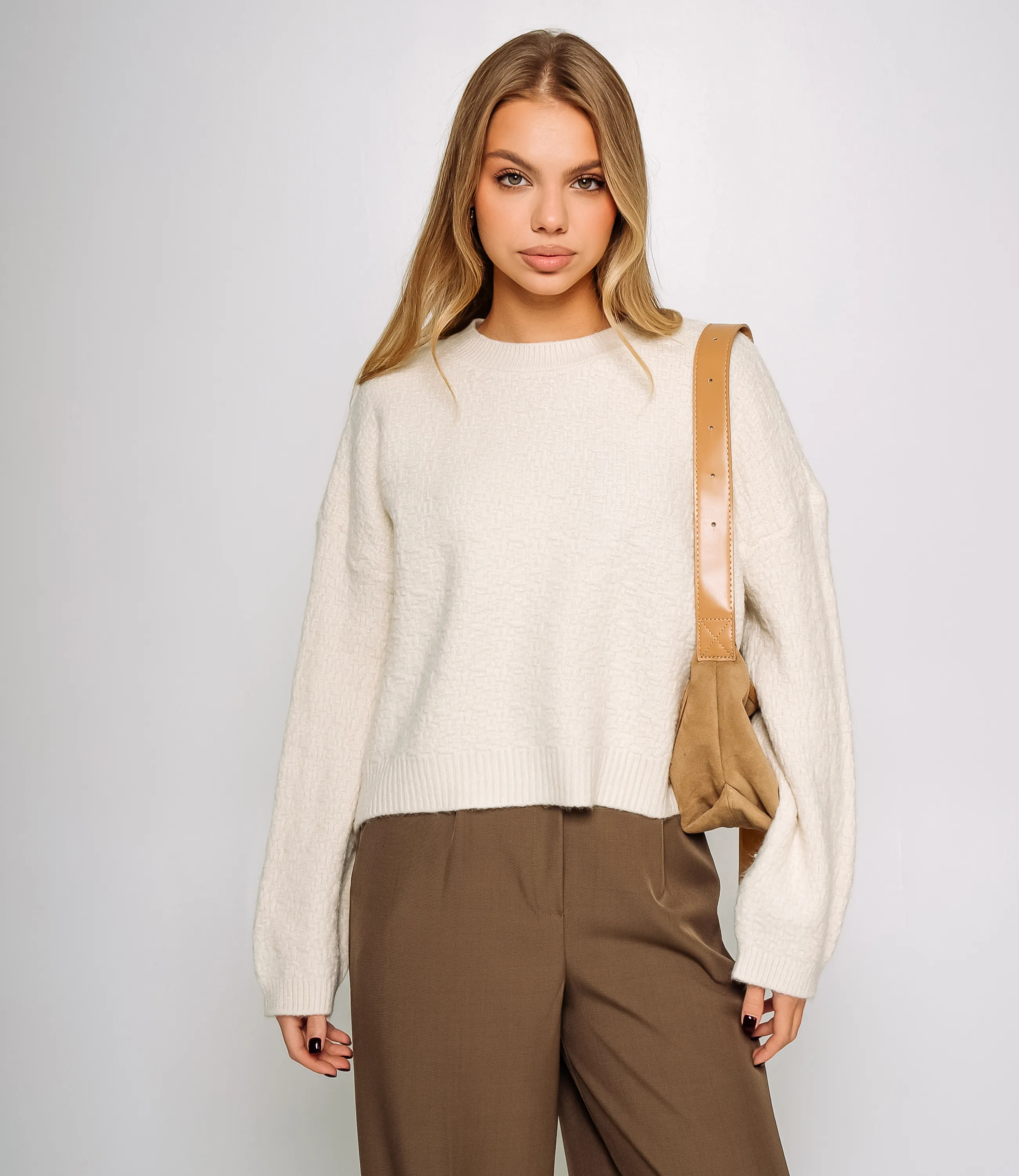 Джемпер — это вещь, которая подчёркивает женственность и универсальность гардероба ваших покупательниц. Модель выполнена из плотной, мягкой и слегка текстурированной ткани с оригинальным узором, напоминающим мелкую плетёную структуру. Свободный, слегка укороченный силуэт, длинные рукава и закруглённый вырез горловины создают комфортный и современный образ. В области манжет и низа джемпер дополнен плотной резинкой, которая придаёт аккуратный вид и сохраняет форму при активной носке. Для пошива использована ткань (55% акрил, 40% хлопок, 5% шерсть), отличающаяся отменным качеством и приятной на ощупь фактурой. Даже после многократных стирок изделие не утратит первоначальной привлекательности и формы. Цвет изделия насыщенный и полностью соответствует фотографии на сайте, что облегчает демонстрацию покупателям и снижает число возвратов. На странице представленная таблица размеров поможет вам корректно сформировать ассортимент и подобрать оптимальные размеры для продажи. Производитель предлагает стильное и продуманное решение, востребованное покупательницами, которые ценят сочетание качества и комфорта. Установленные оптовые условия являются адекватными и обеспечивают хорошую маржинальность при продаже в магазинах. Рекомендуем включить этот джемпер в ассортимент оптовых закупок — он станет привлекательным предложением для клиентов, ищущих повседневную и универсальную одежду. Рост модели 168 см., 89-63-90.