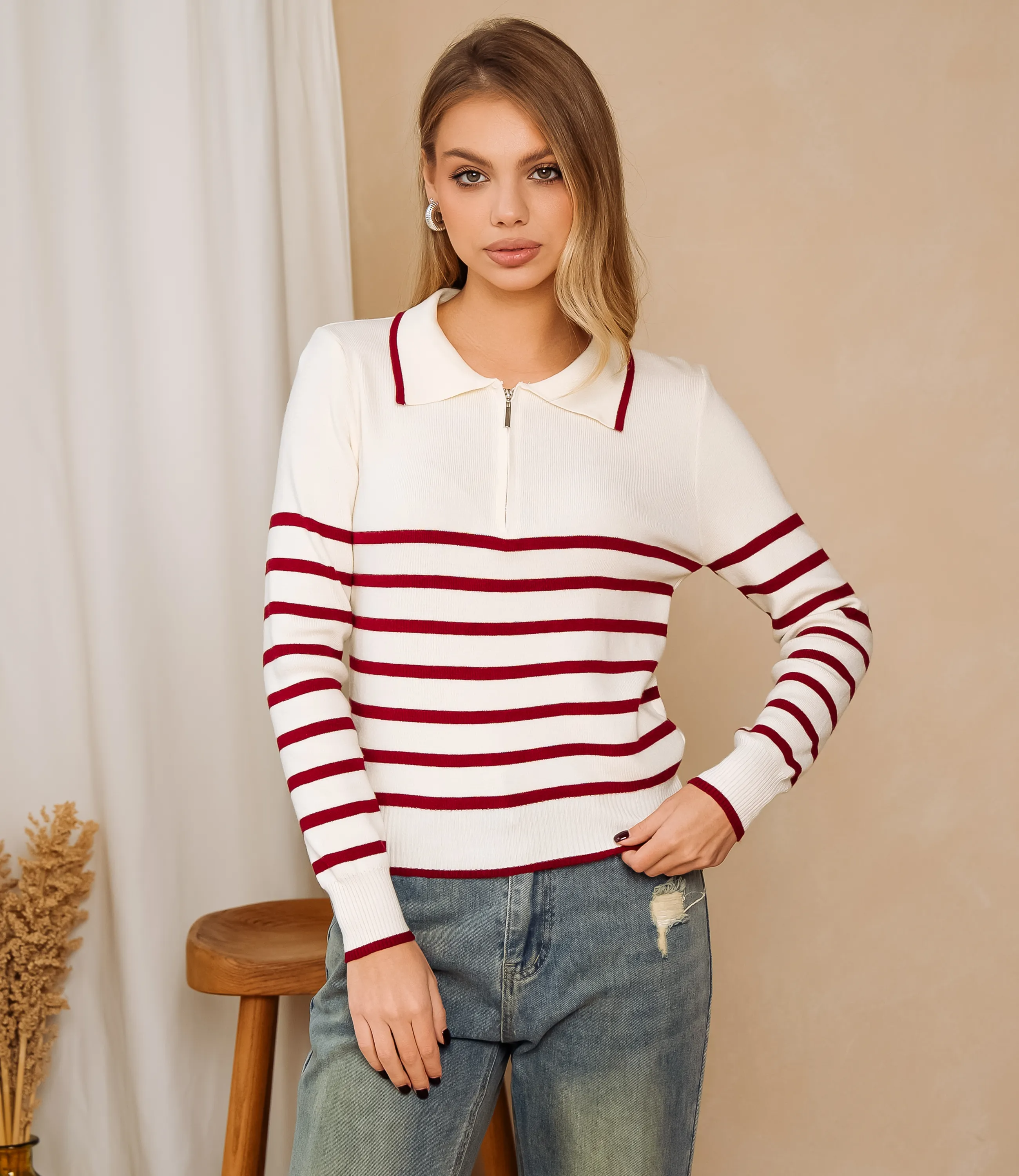 Джемпер — это элегантный и стильный элемент гардероба, который подчеркивает уникальность каждой женщины. Тонкий трикотажный джемпер с прямым прилегающим силуэтом и длинными рукавами, выполнен в классической пуловерной конструкции с отложным маленьким воротником и короткой центральной молнией до середины груди, передняя часть и рукава декорированы горизонтальными полосами одинаковой ширины, манжеты и поясная резинка выполнены в плотной вязаной резинке для плотного прилегания, плечевые швы ровные. Состав 65% хлопок, 30% полиэстер и 5% эластан. Для удобства покупателей на странице доступна таблица размеров, что поможет им легко найти идеальный размер. Предложенная цена является доступной, а значит, ваши клиентки смогут с легкостью добавить этот стильный элемент в свой гардероб. Не упустите шанс предложить своим покупателям этот превосходный джемпер, который позволят им чувствовать себя уверенно и элегантно в любой обстановке! Подарите вашим клиентам возможность выделиться и продемонстрировать свой уникальный стиль с этим удивительным изделием! Рост модели 168 см., 89-63-90.