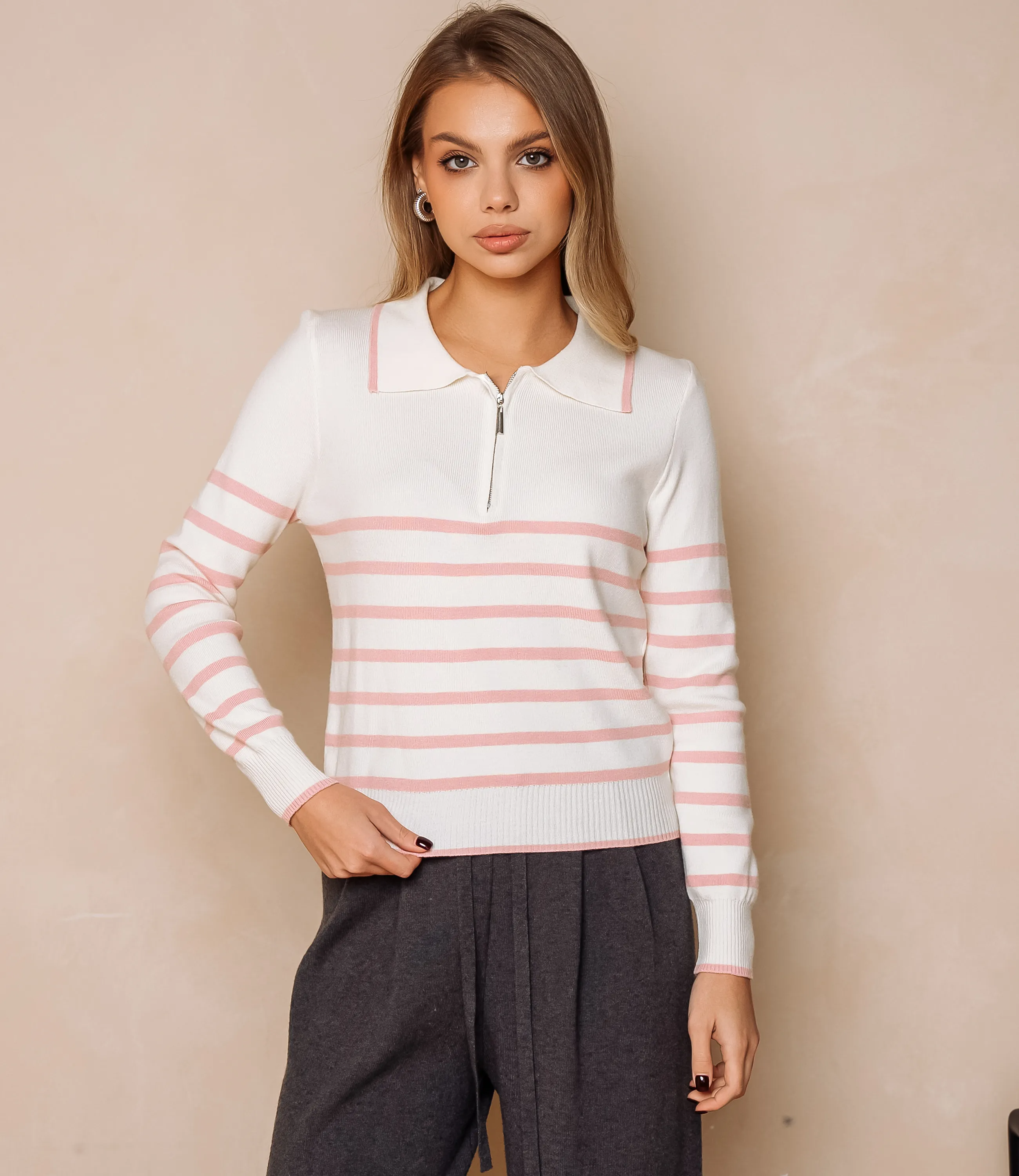 Джемпер — это элегантный и стильный элемент гардероба, который подчеркивает уникальность каждой женщины. Тонкий трикотажный джемпер с прямым прилегающим силуэтом и длинными рукавами, выполнен в классической пуловерной конструкции с отложным маленьким воротником и короткой центральной молнией до середины груди, передняя часть и рукава декорированы горизонтальными полосами одинаковой ширины, манжеты и поясная резинка выполнены в плотной вязаной резинке для плотного прилегания, плечевые швы ровные. Состав 65% хлопок, 30% полиэстер и 5% эластан. Для удобства покупателей на странице доступна таблица размеров, что поможет им легко найти идеальный размер. Предложенная цена является доступной, а значит, ваши клиентки смогут с легкостью добавить этот стильный элемент в свой гардероб. Не упустите шанс предложить своим покупателям этот превосходный джемпер, который позволят им чувствовать себя уверенно и элегантно в любой обстановке! Подарите вашим клиентам возможность выделиться и продемонстрировать свой уникальный стиль с этим удивительным изделием! Рост модели 168 см., 89-63-90.