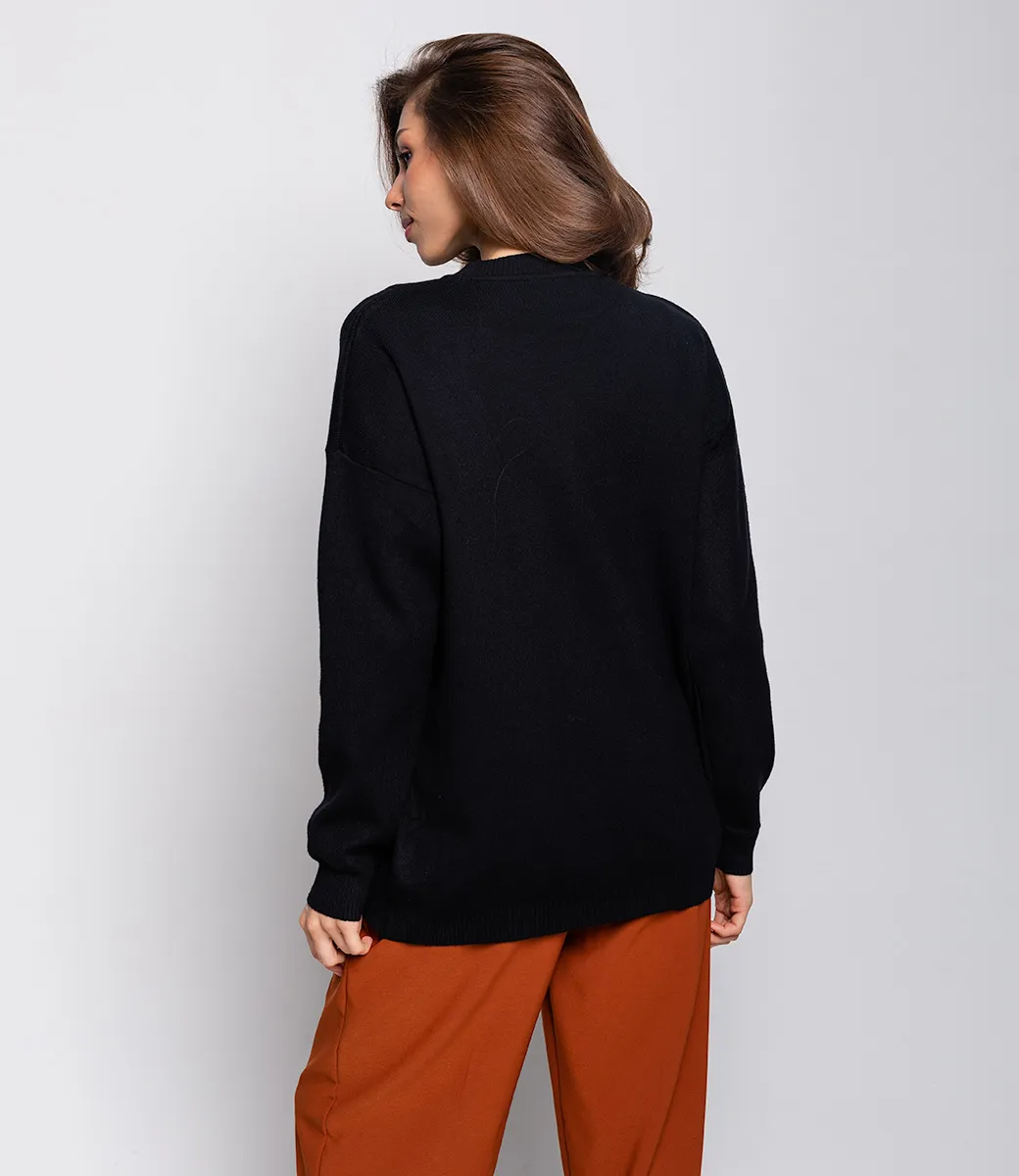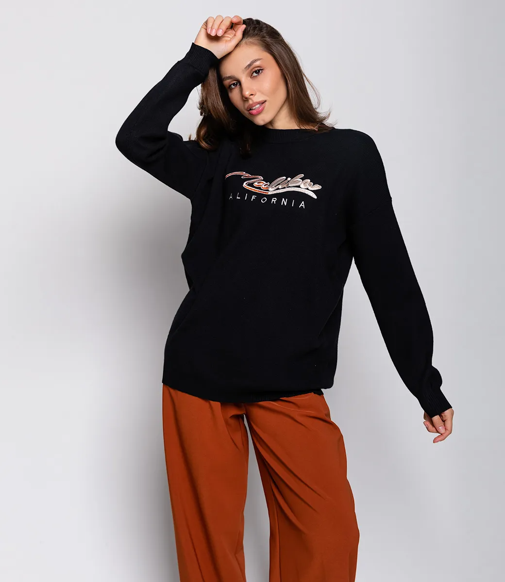Практичный и удобный женский джемпер на каждый день. Он изготовлен из качественного материала, обладающего мягкостью, гипоаллергенностью и удерживающего тепло, при этом позволяющего коже дышать. Модель выполнена в классическом стиле и дополнена принтом в виде надписи, имеет свободный силуэт и среднюю длину. В ассортименте представлены различные модные оттенки.